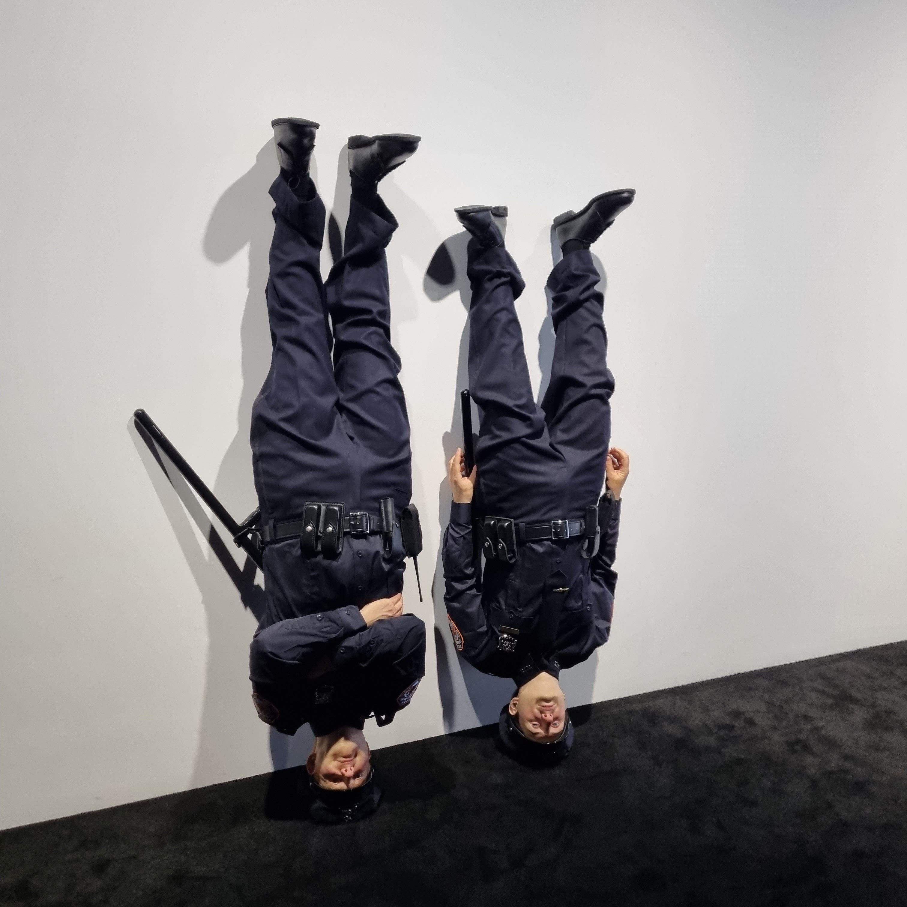 9.11 테러 직후 전시된 작품인데 당시 관객은 나란히 뒤집힌 경찰의 모습에서 무너진 쌍둥이 빌딩을 연상하고, 테러로부터 국민을 지켜내지 못한 국가의 실패를 읽을 수 있었다고 하네요.
