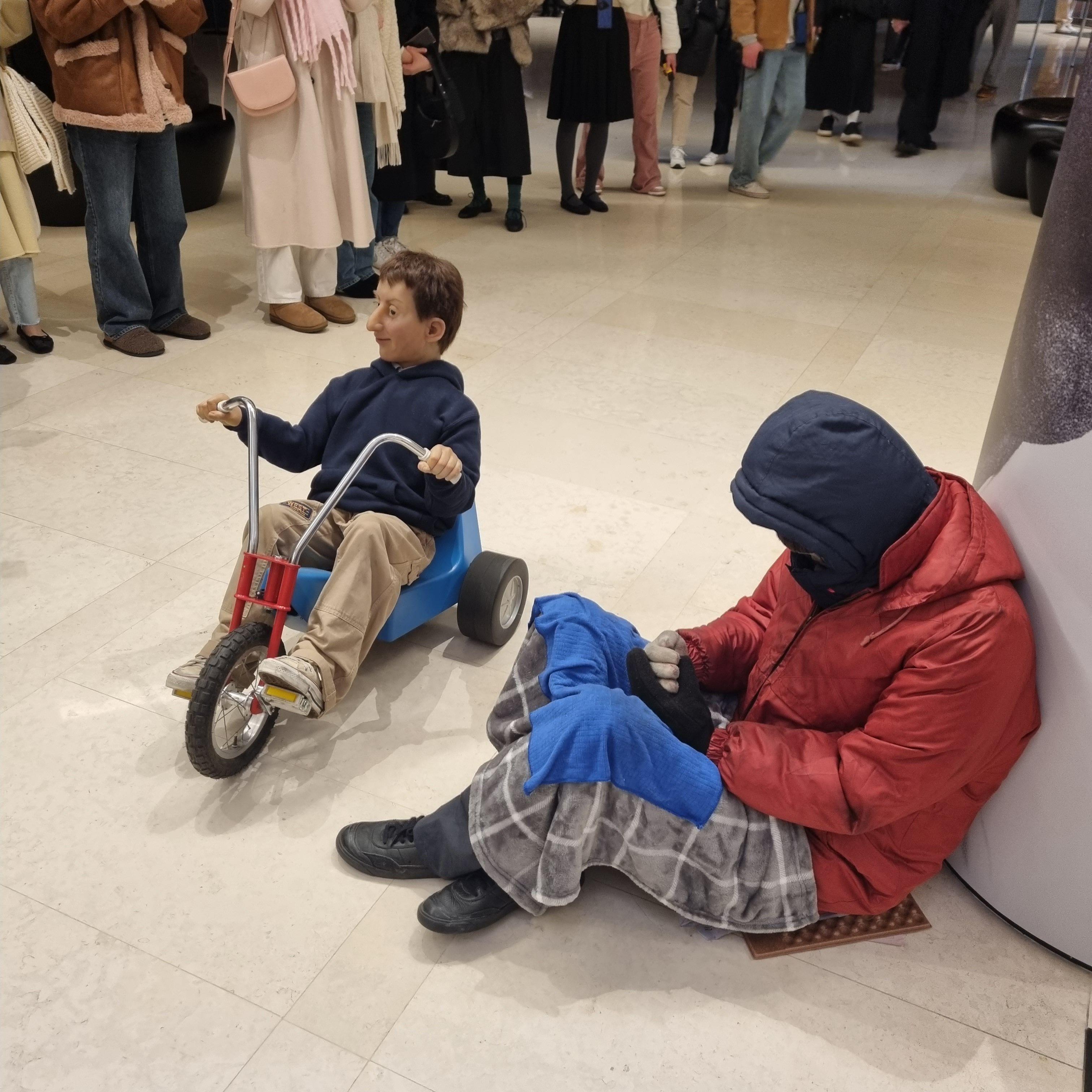 그리고 그 옆을 세발자전거를 타고 누비는 카텔란의 얼굴을 닮은 아이의 작품도 눈을 떼기가 어려웠습니다.(로비를 돌아다님)