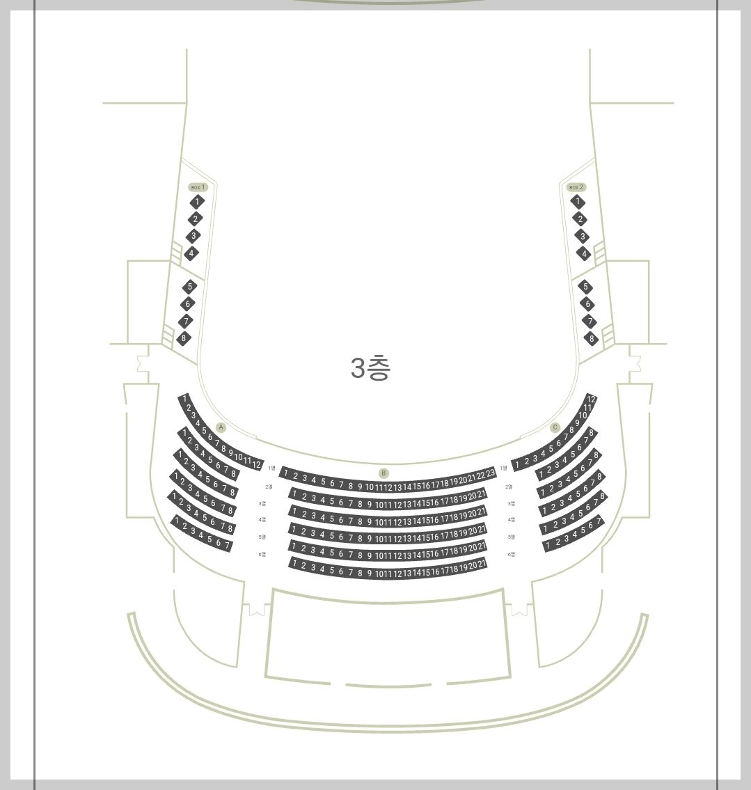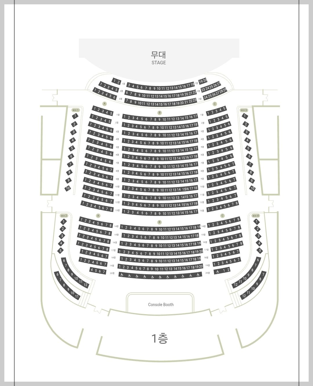 해오름극장 좌석배치도는 아래와 같습니다.