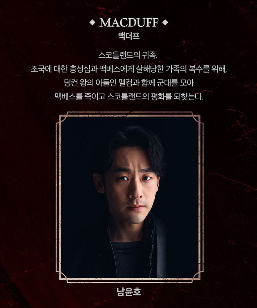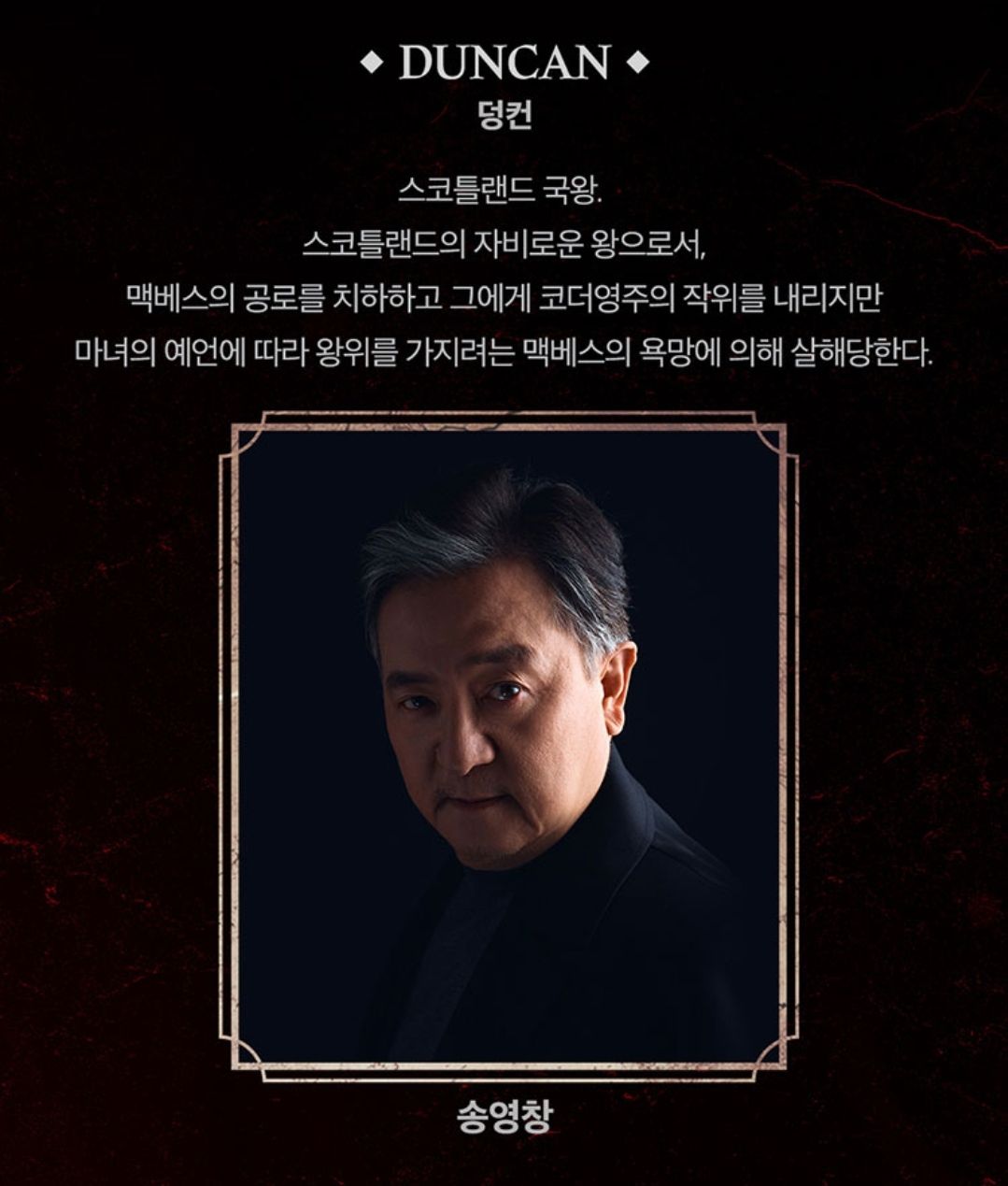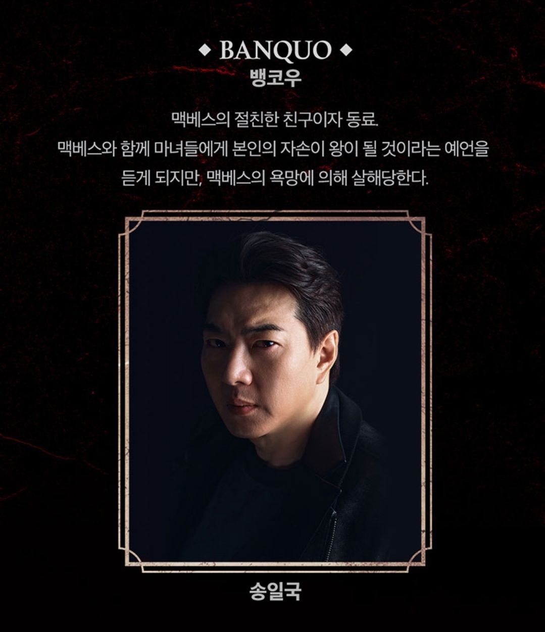 맥베스의 자격지심을 자극하는 동료 '뱅코우'역은 송일국이 연기합니다.