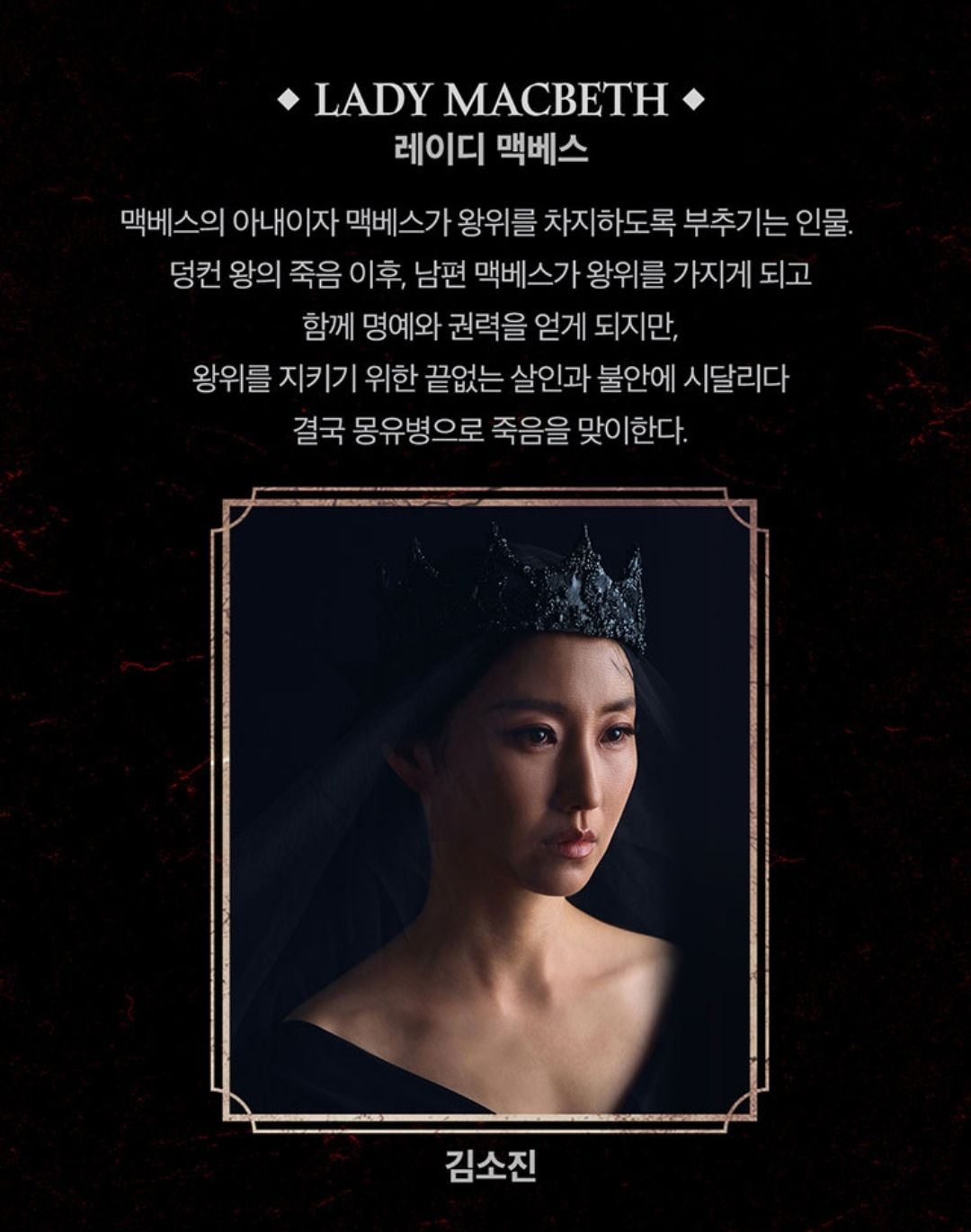 맥베스의 욕망을 일깨우는 아내 '레이디 맥베스'역엔 김소진이 캐스팅되었습니다.
