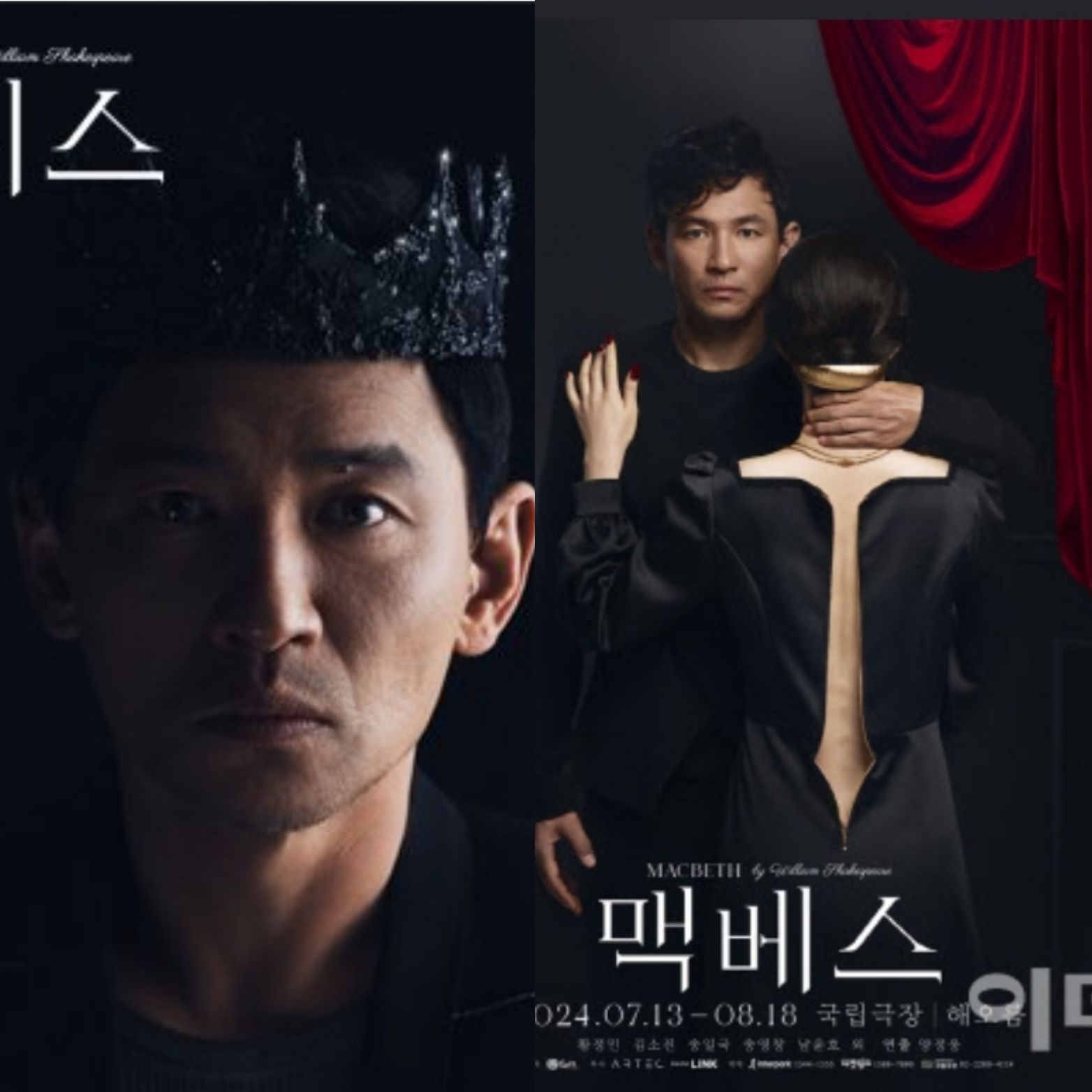 맥베스 포스터는 맥베스로 상징되는 검과 왕관을 아이코닉하게 표현하면서(요시다 유니 작품) 작품에서 빼놓을수 없는 맥베스와 레이디 맥베스의 관계성을 보여줍니다.