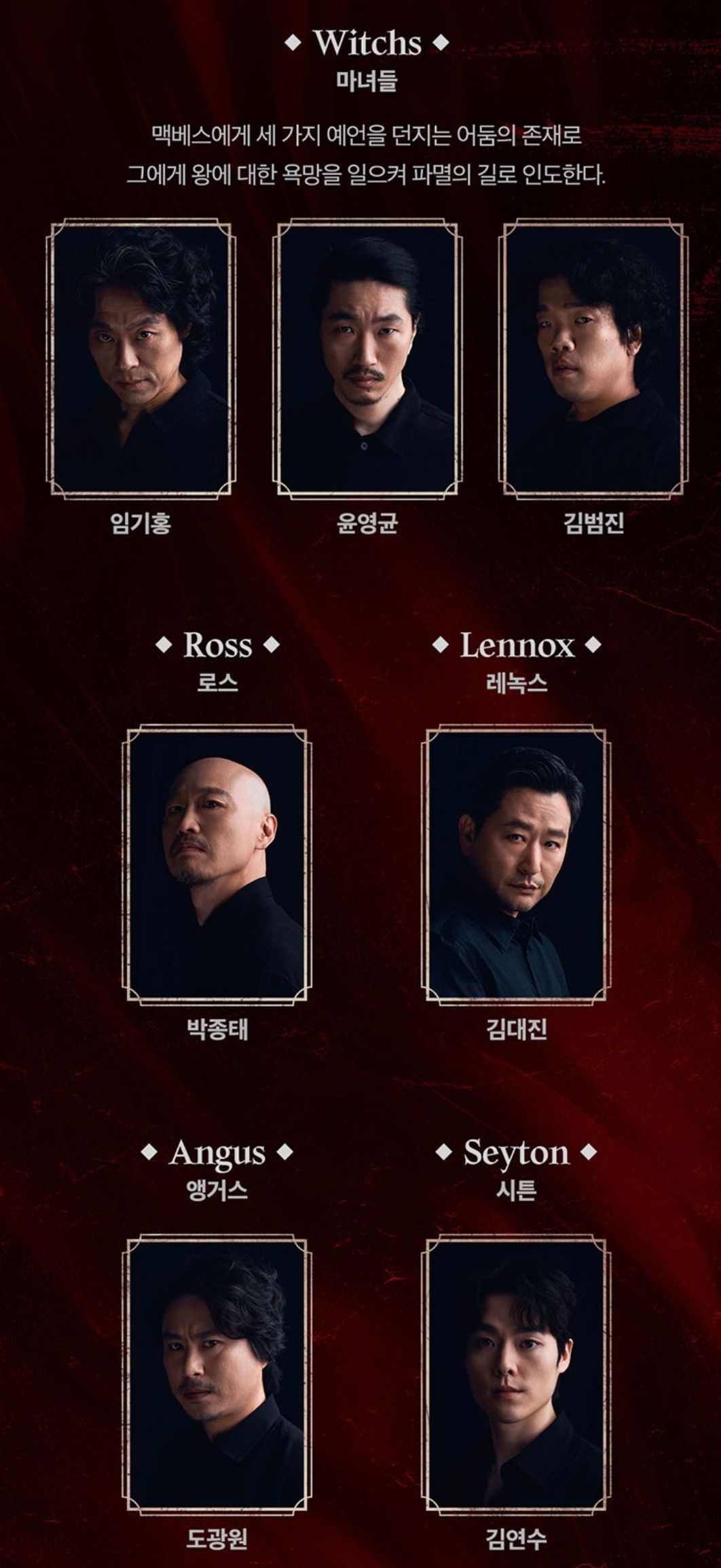 맥베스의 배우들을 살펴보겠습니다.