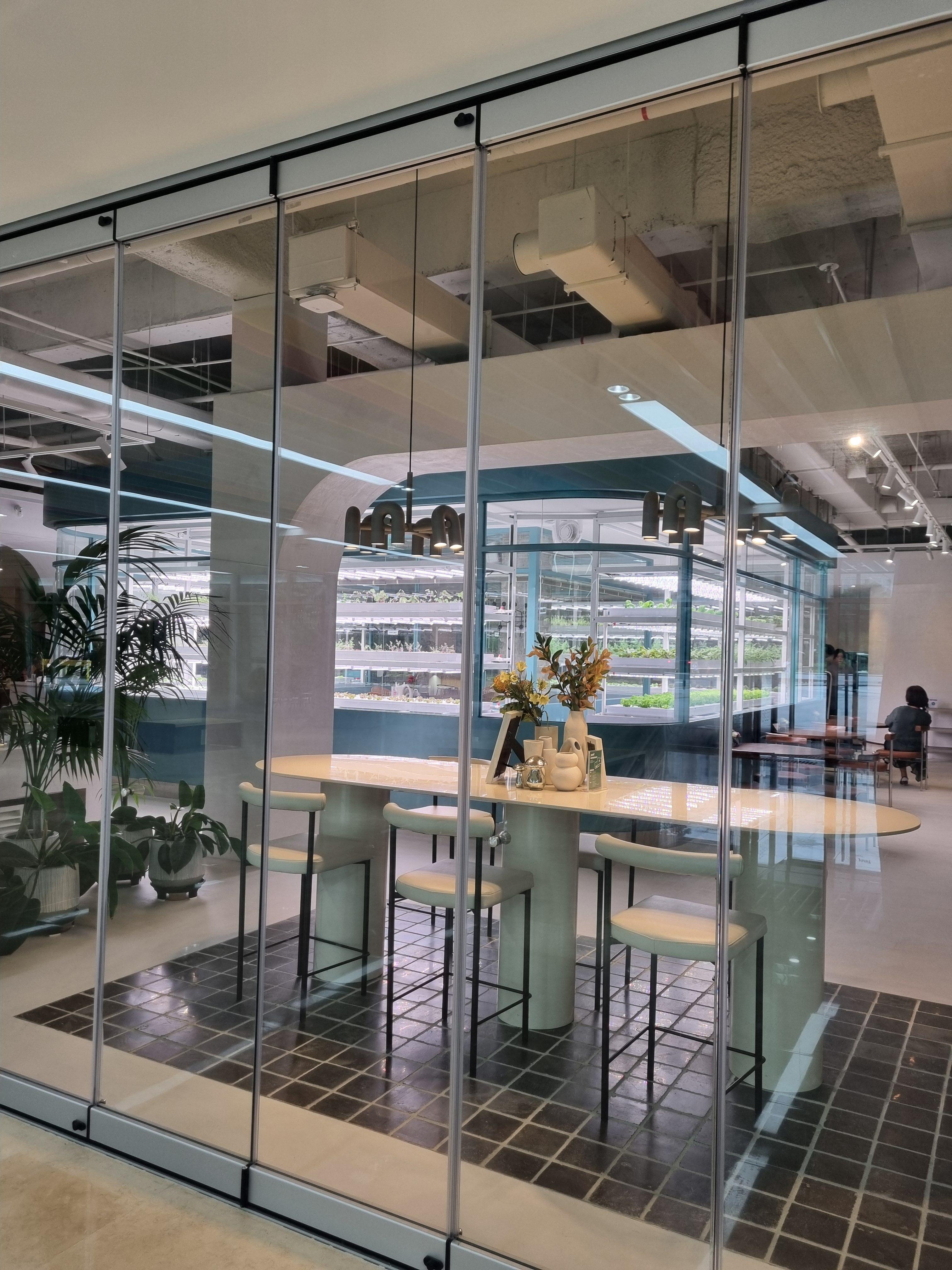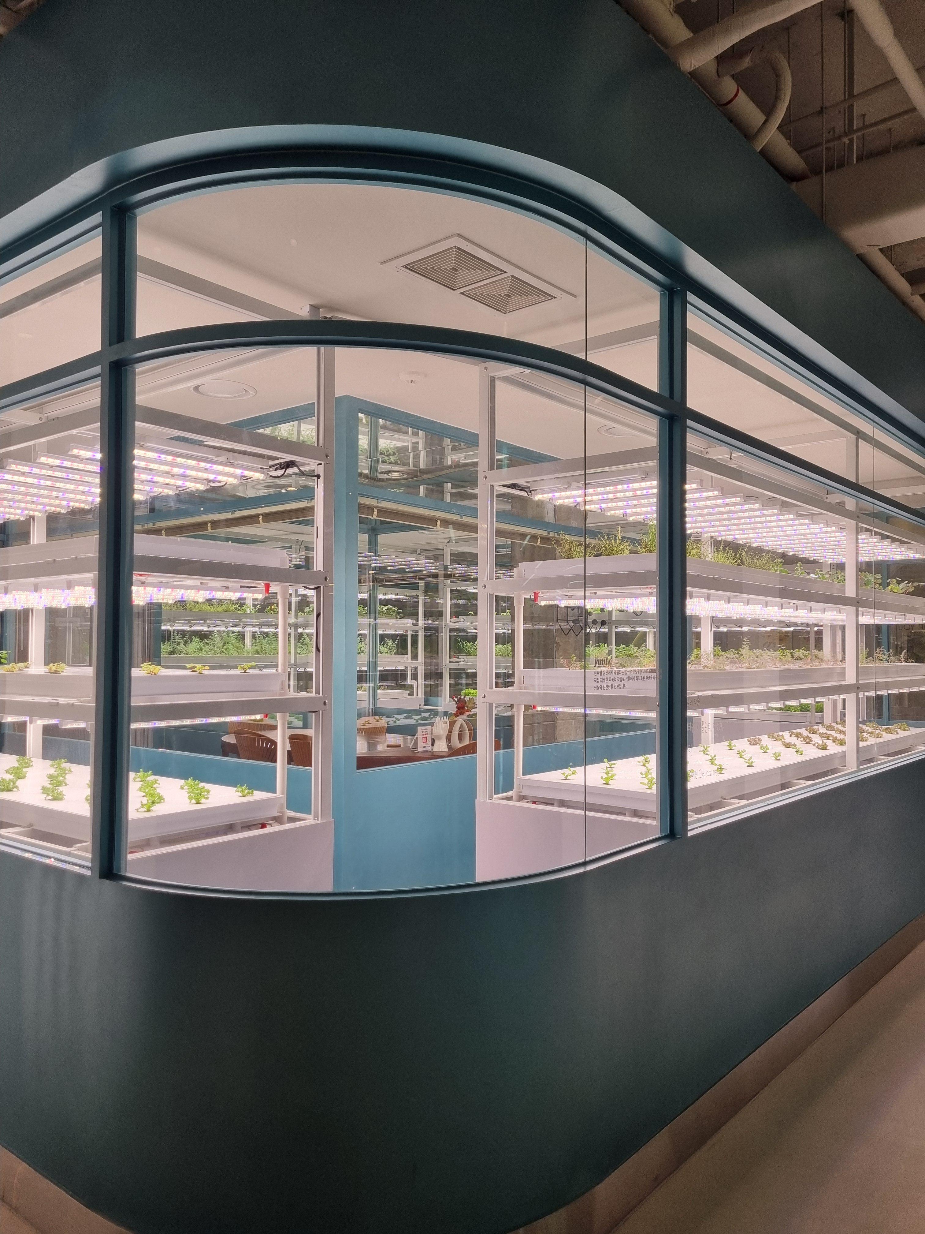 매장 중앙에 대형 스마트 유리온실을 배치해 유럽형 채소와 식용 꽃, 허브 등 녹색 채소들의 싱그러움을 사계절 즐길 수 있습니다.