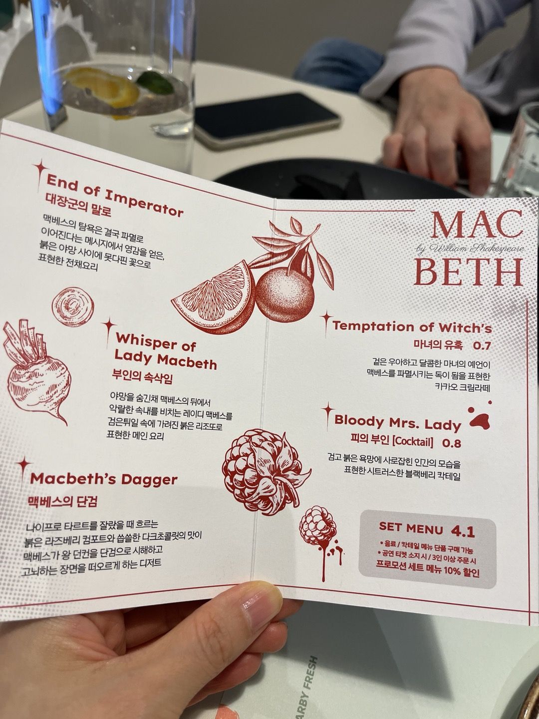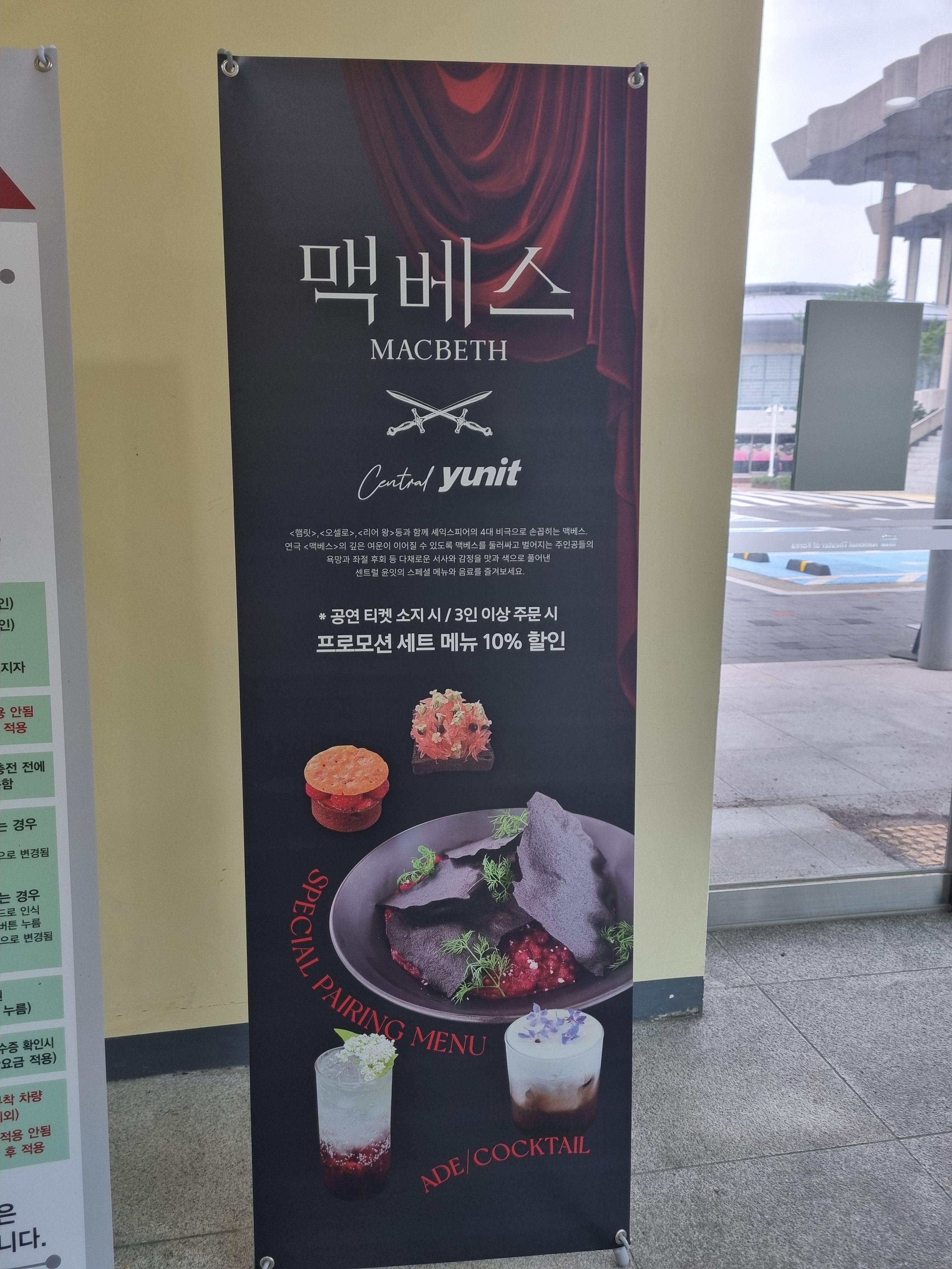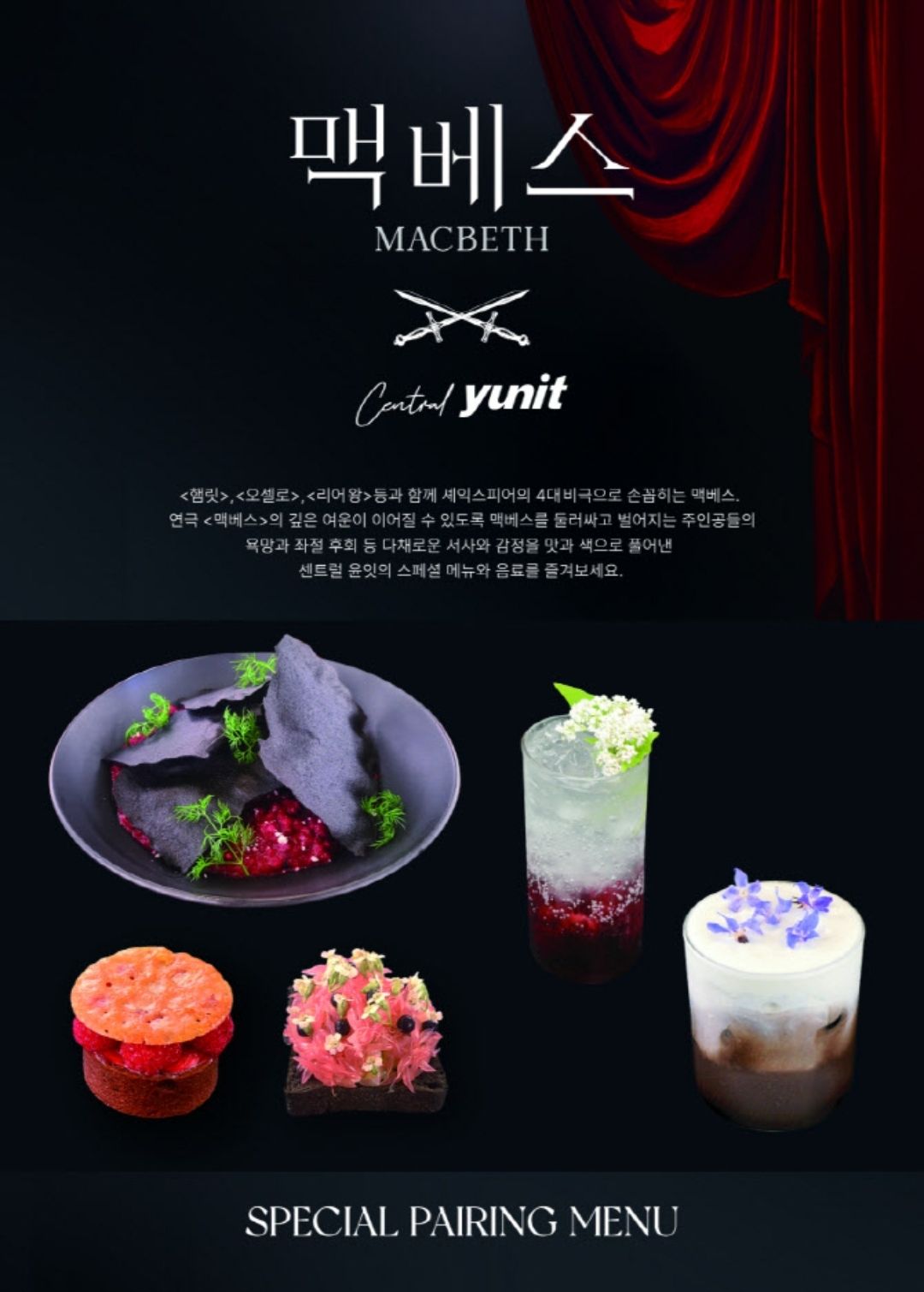 맥베스 공연의 인기에 힘입어 센트럴 윤잇에서는 스페셜 페어링 메뉴를 진행하고 있구요,
