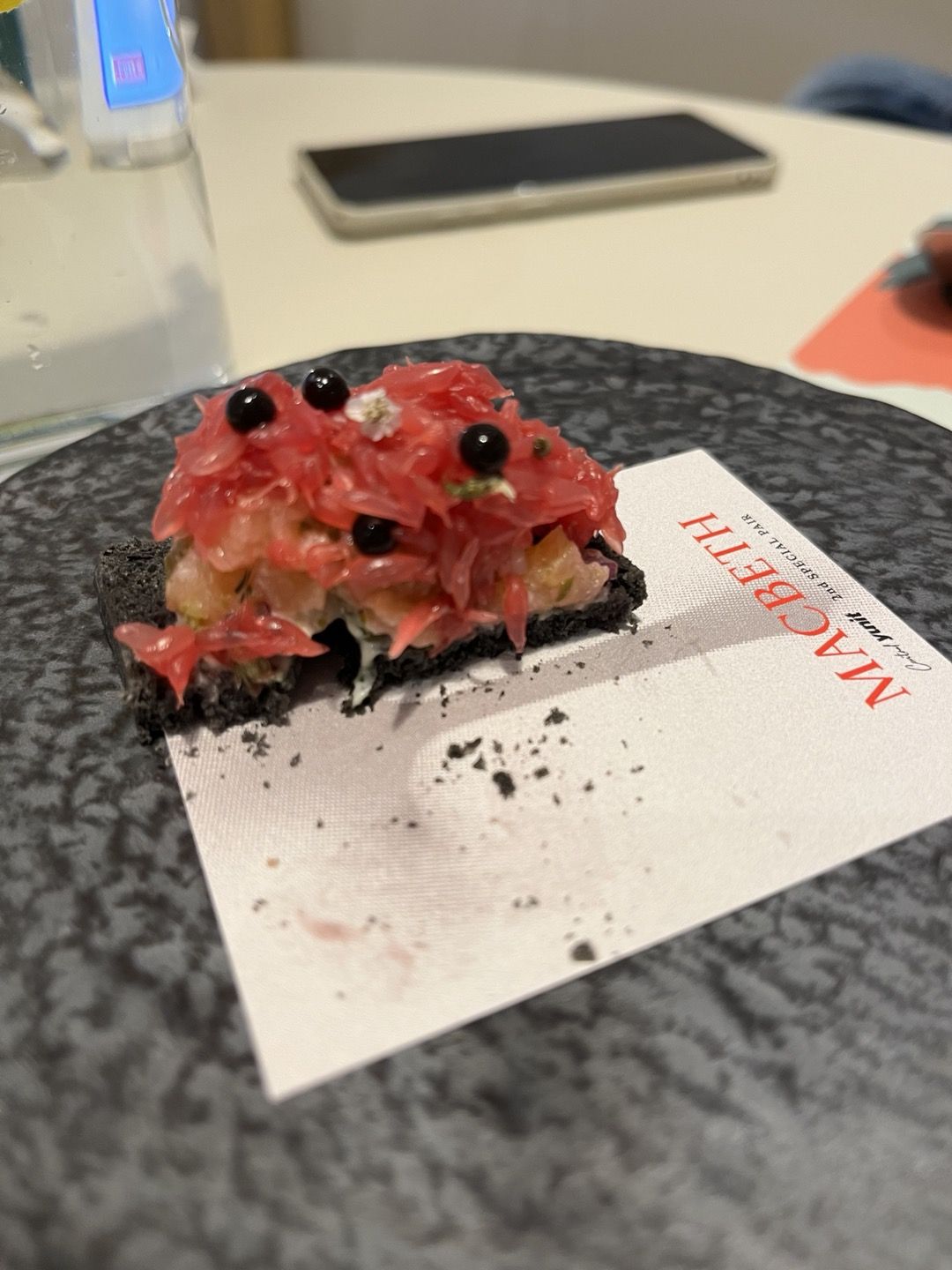 <대장군의 말로>는 맥베스의 탐욕은 결국 파멸로 이어진다는 메시지에서 영감을 얻은, 붉은 야망 사이에 못다핀 꽃으로 표현한 전채요리라고 합니다.