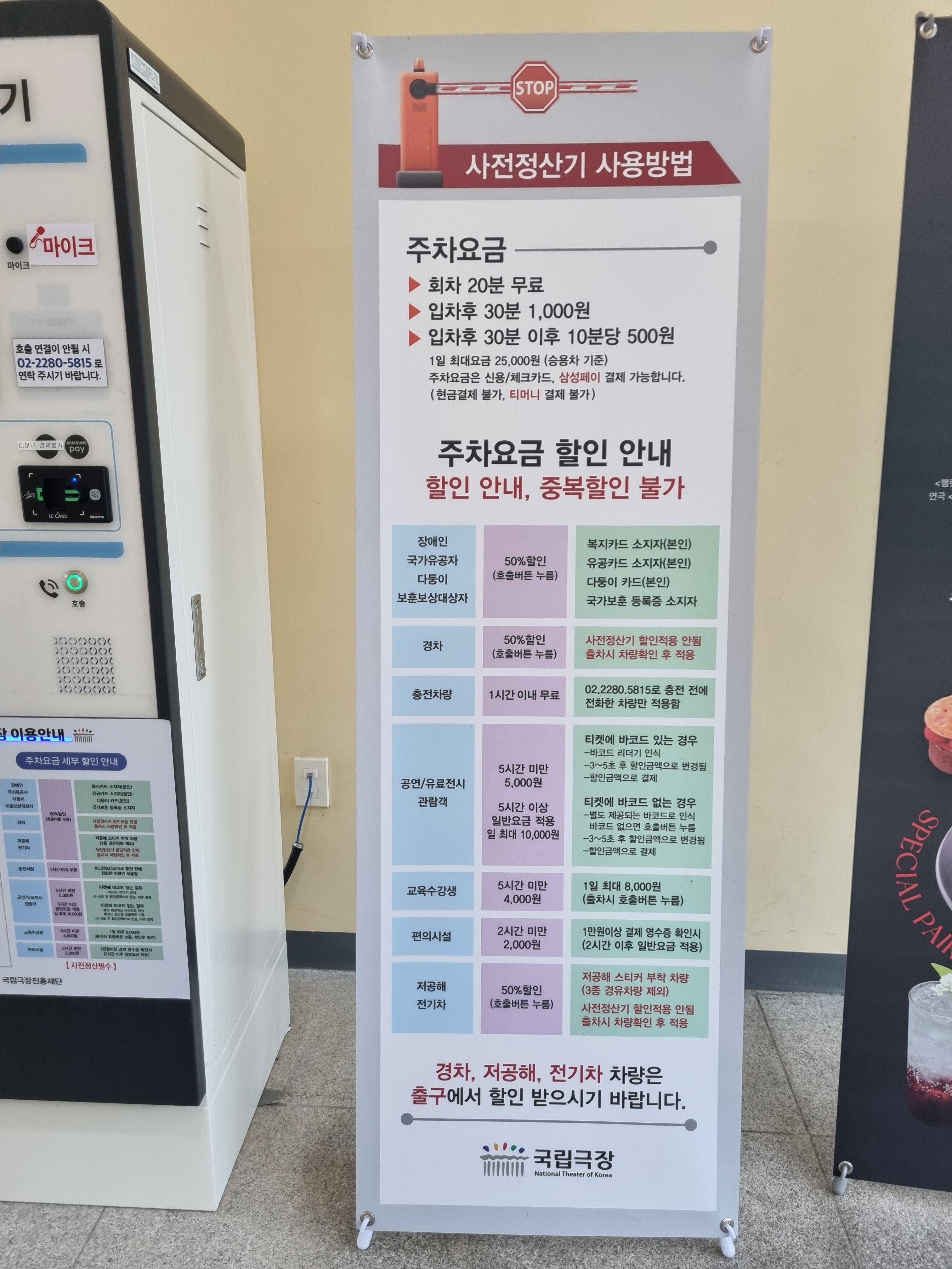 국립극장 주차비의 상세내용은 아래 사진을 참고하세요.