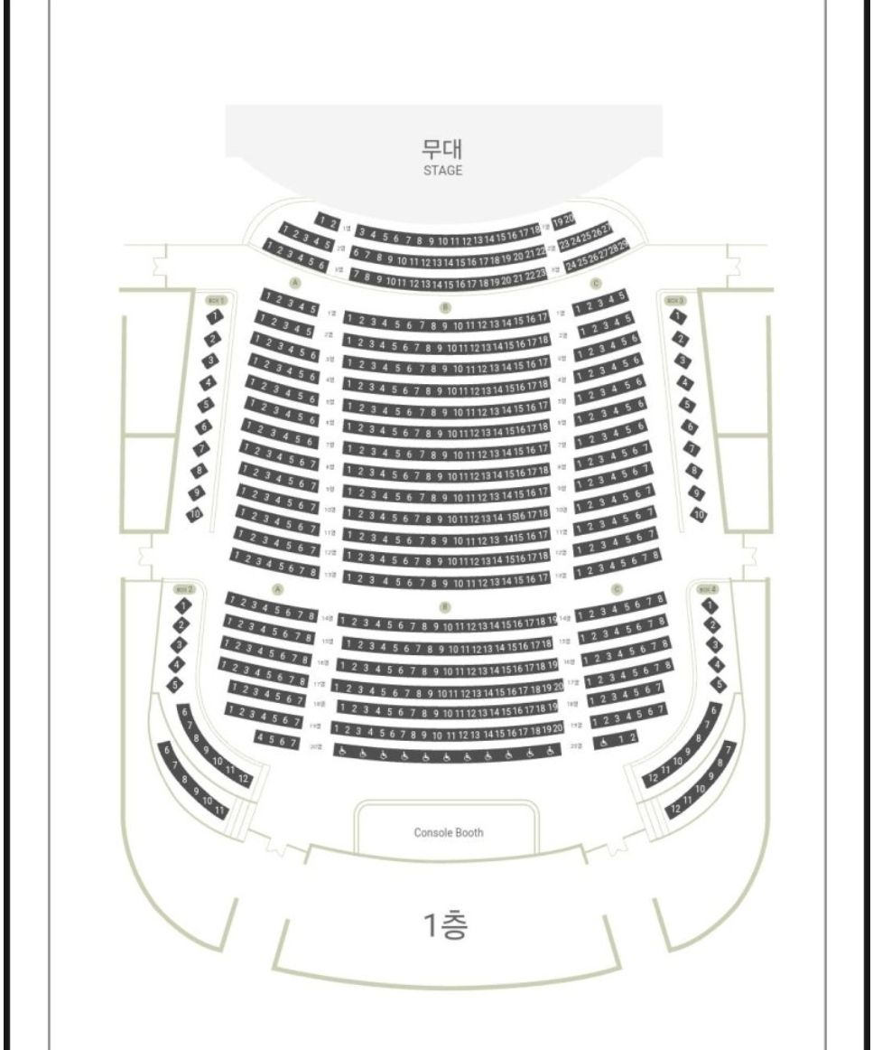 국립극장 해오름극장 1층의 좌석배치도입니다.