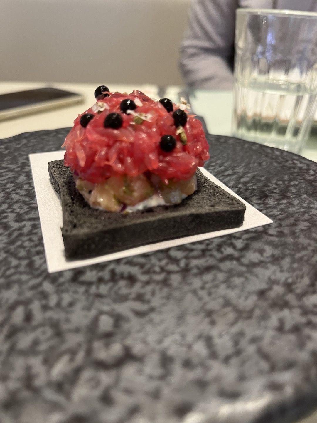 안에 연어가 들어있고 위에 자몽으로 장식해 같이 먹으면 상큼한 애피타이져였어요.