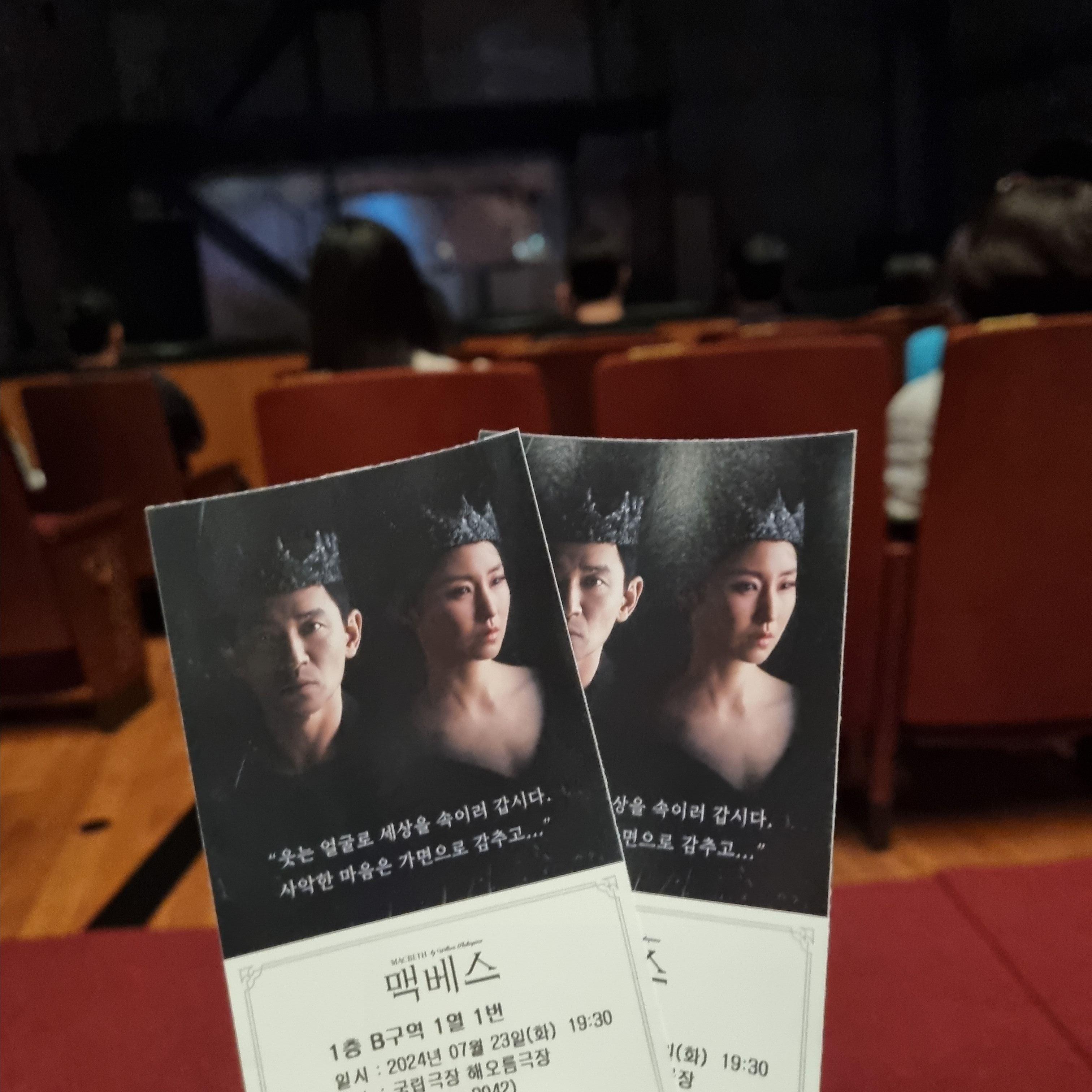 만약 맥베스 1열에 오른쪽으로 예약하셨다면 축하드려요!