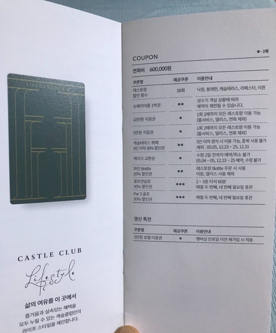 저희는 캐슬클럽의 '라이프스타일'회원으로 가입하고 다녀왔습니다.(1년짜리)