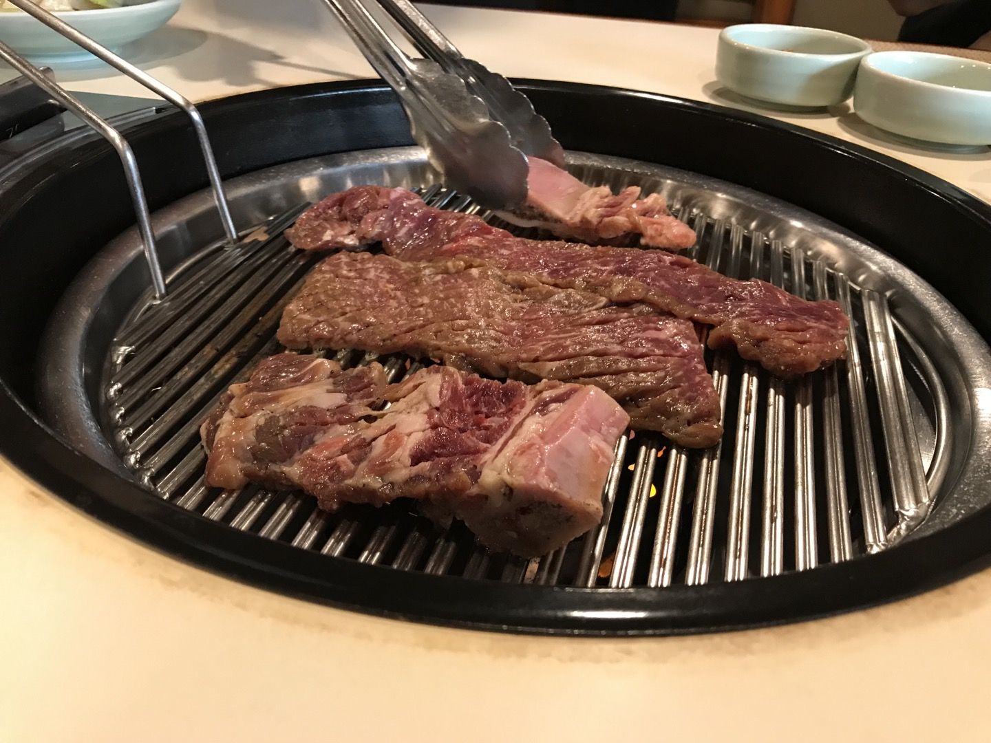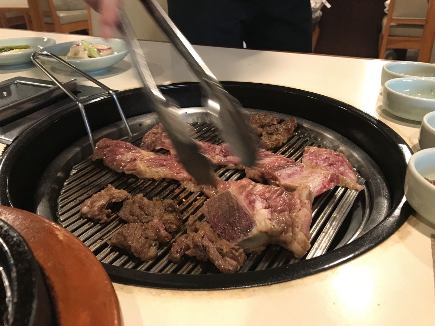 주문한 한우양념갈비가 나오고, 직원분이 계속 고기를 옆에서 구워주시면서 알맞게 구워진 고기는 앞접시에 올려주십니다.