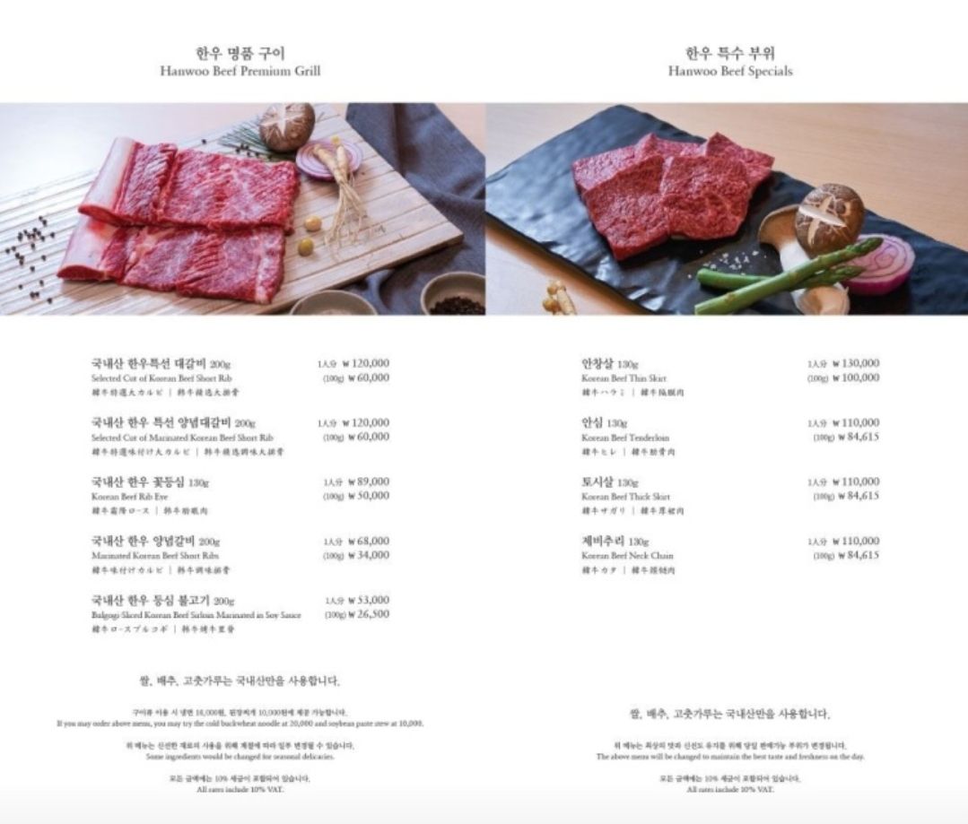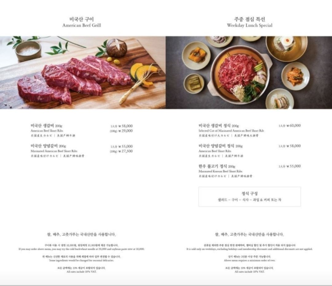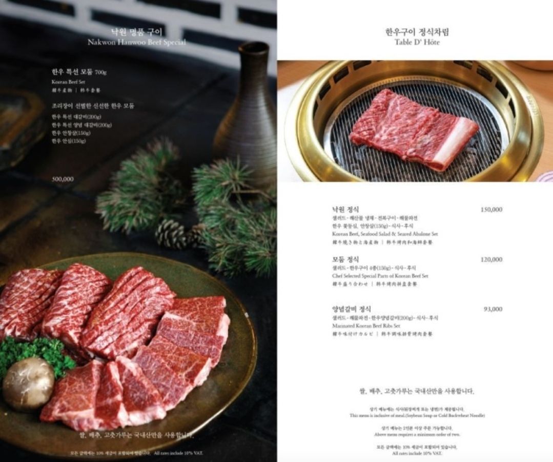 한우구이 정식차림외에도 다른 메뉴들이 있었지만 저희는 양념갈비 정식(93,000원)을 주문했습니다.