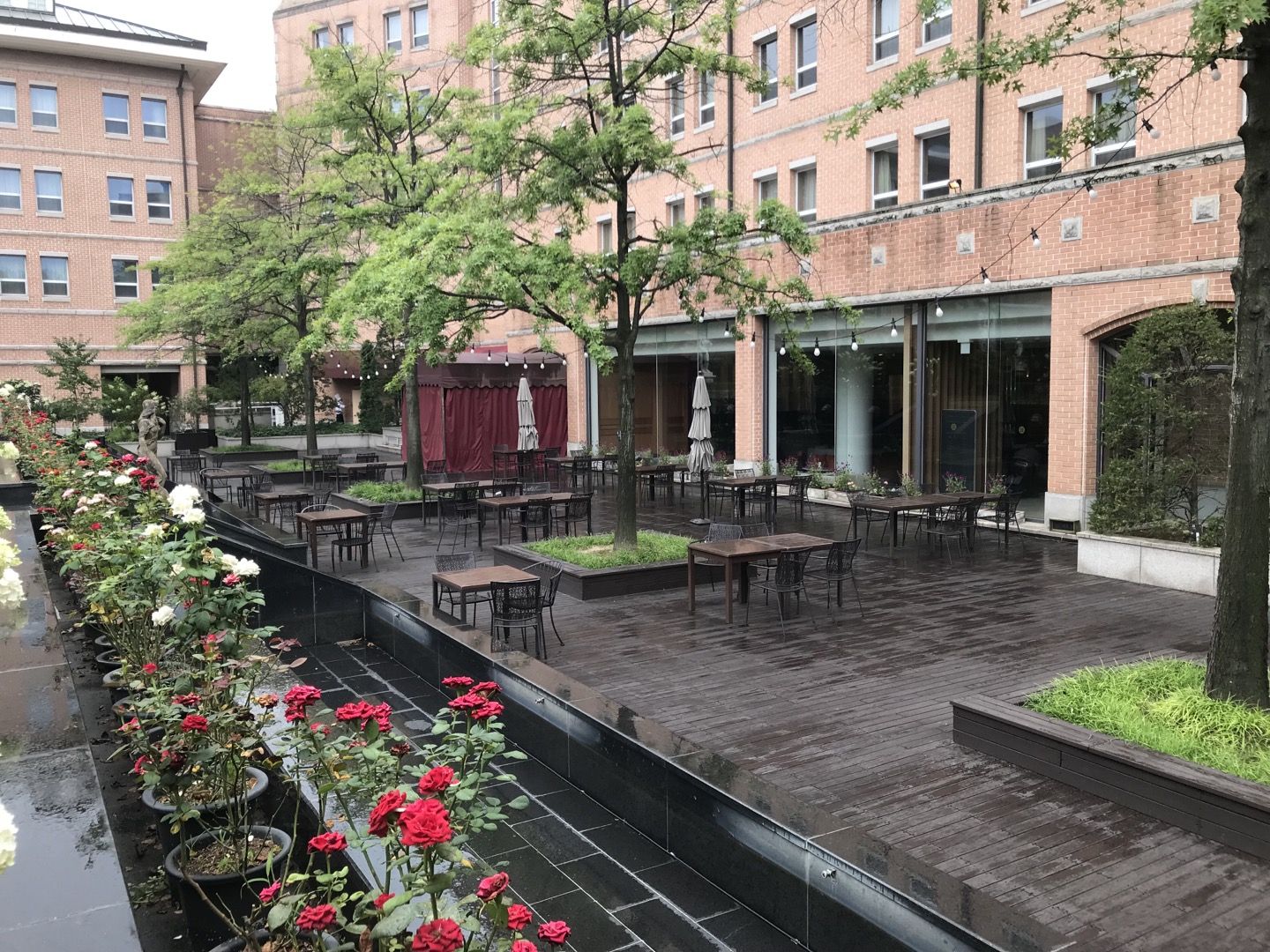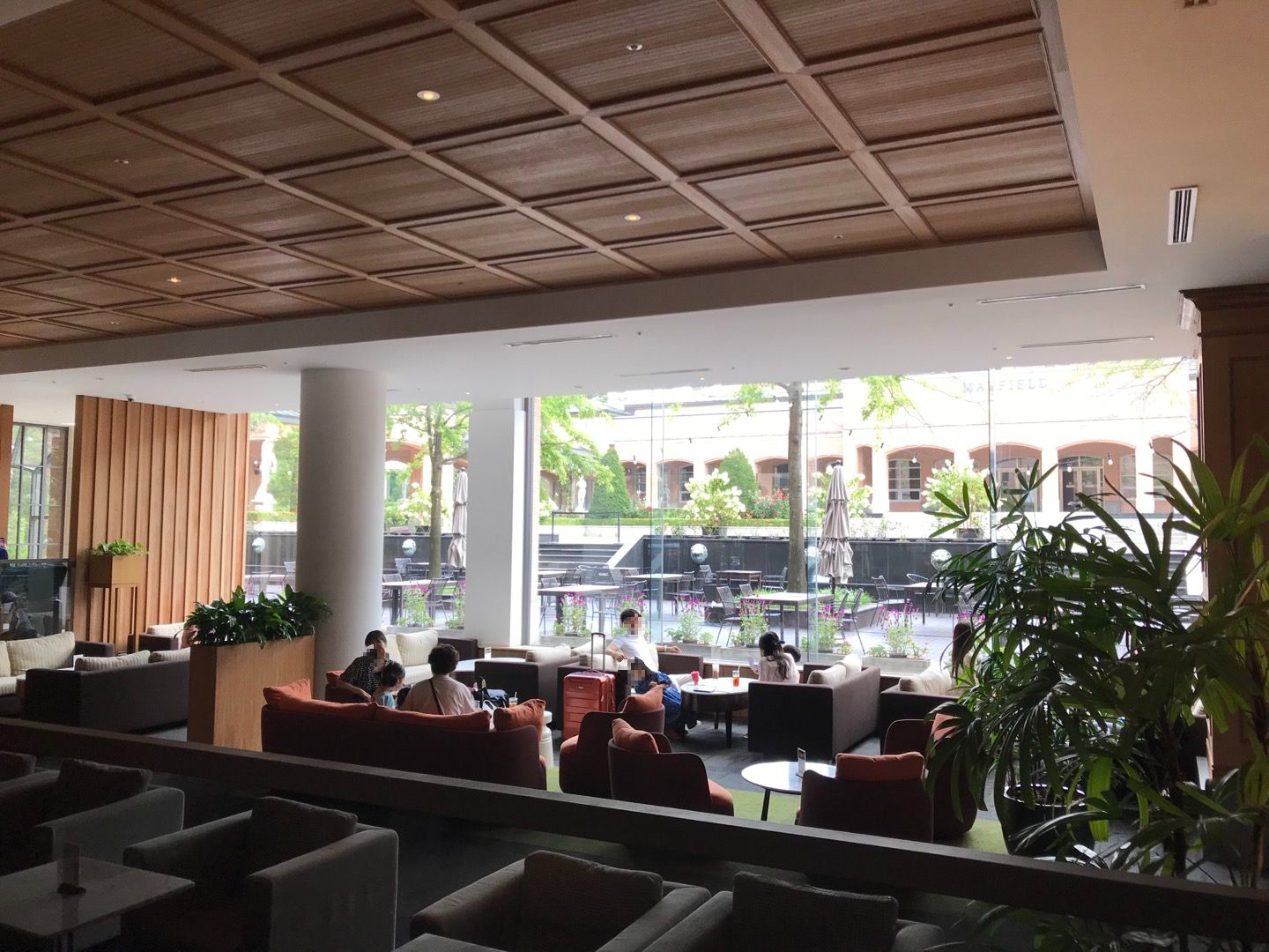 한쪽 면이 밖이 보이는 통유리라 메이필드호텔의 일층 전경이 잘 보여서 좋았고 테라스도 있습니다.