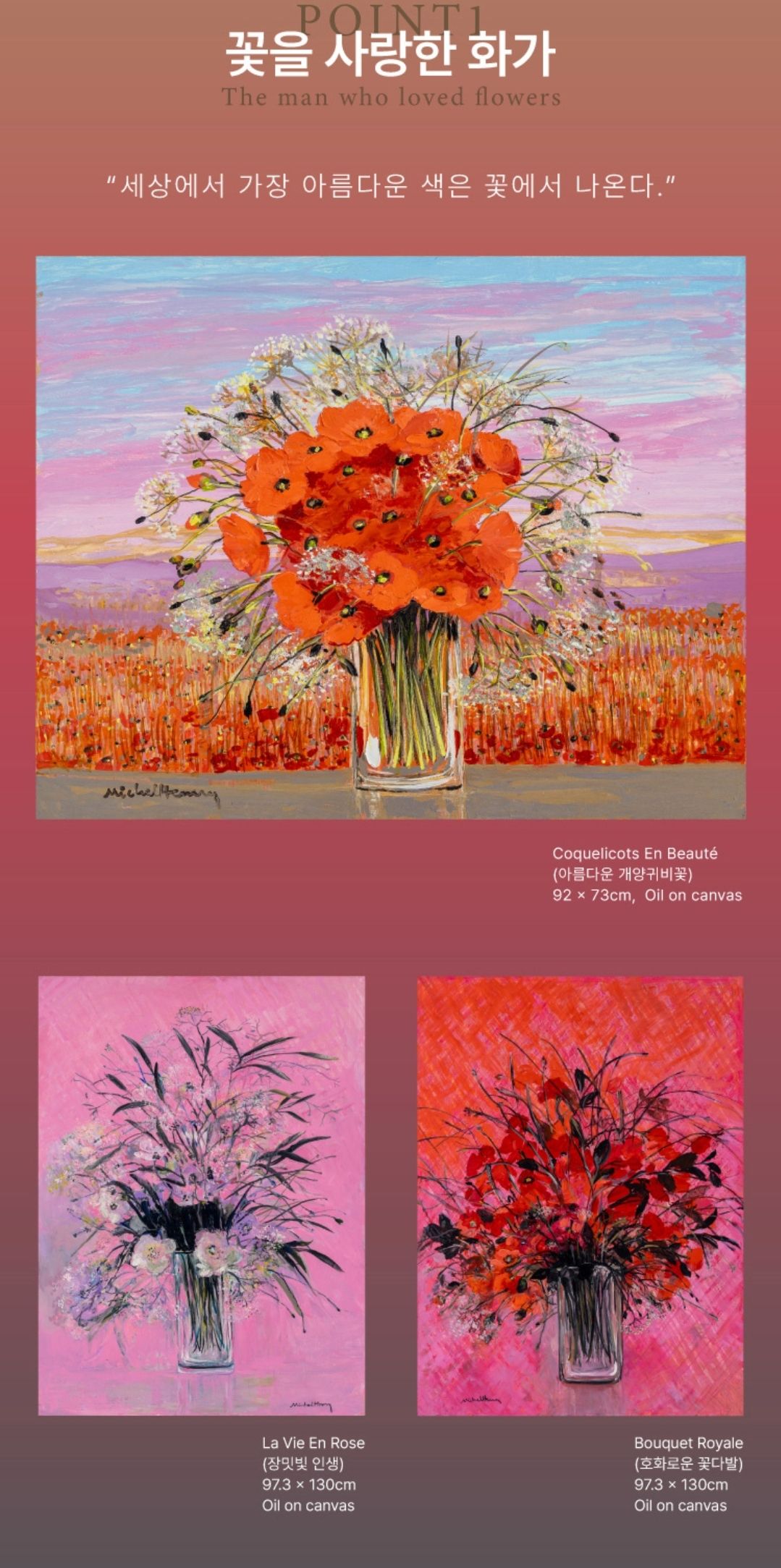 1928년 프랑스에서 태어난 미셸 앙리는 유럽의 낭만을 꽃과 함께 표현하는 프랑스가 가장 사랑한 최고의 구상회가로 불리고 있어요.