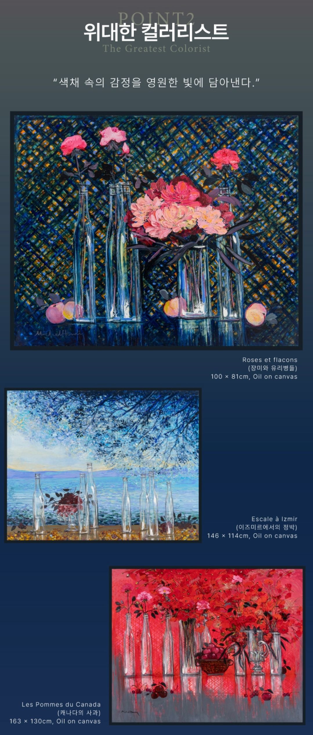 이번 앵콜 전시 <미셸 앙리 : 위대한 컬러리스트> 전시는 따스하고 생명력 넘치는 꽃과 작가의 영감으로 표현된 풍경들과 밝고 생기넘치는 미셸 앙리의 오리지널 작품 100여 점을 전시합니다.