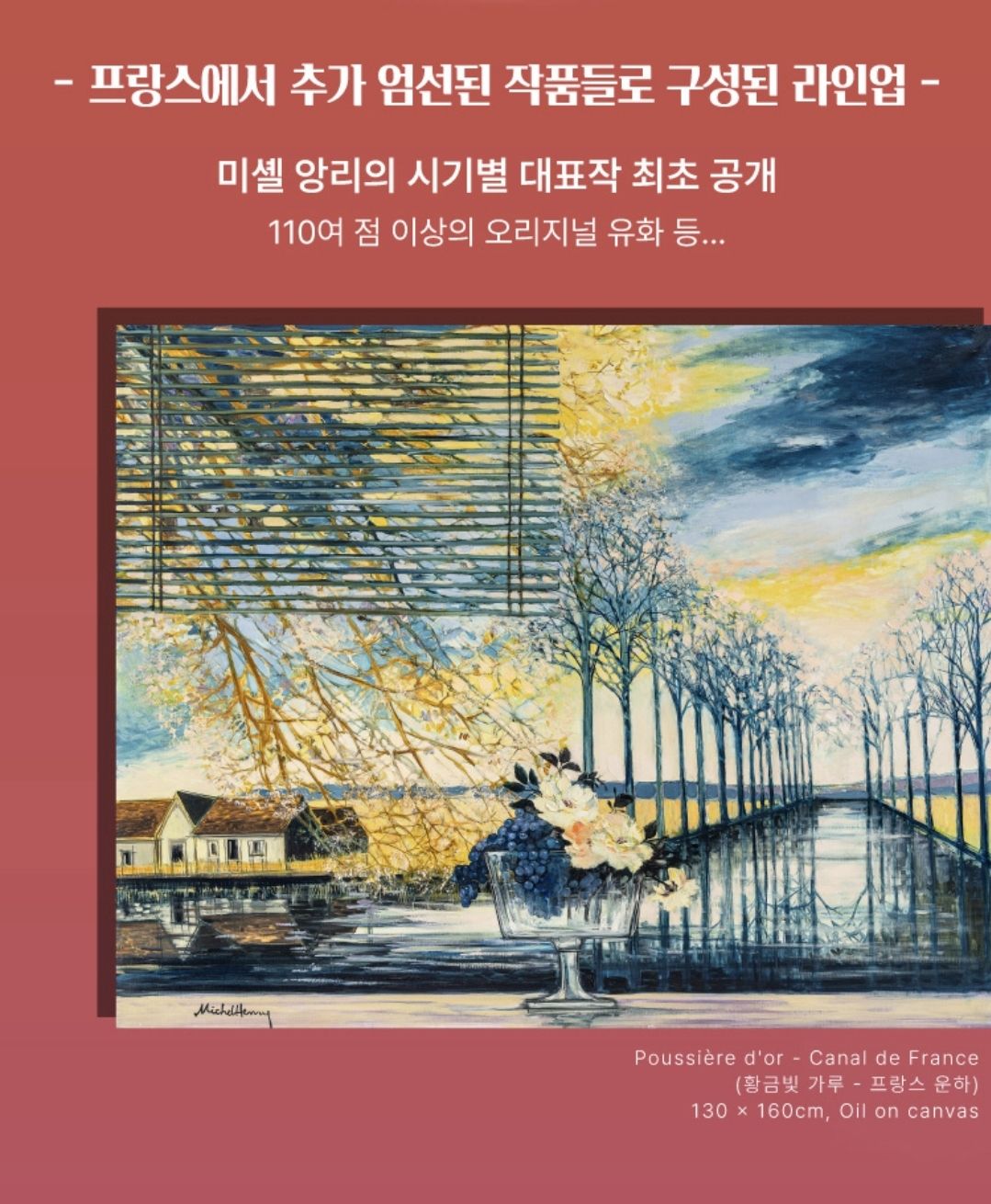이번 앵콜 전시 <미셸 앙리 : 위대한 컬러리스트> 전시는 따스하고 생명력 넘치는 꽃과 작가의 영감으로 표현된 풍경들과 밝고 생기넘치는 미셸 앙리의 오리지널 작품 100여 점을 전시합니다.