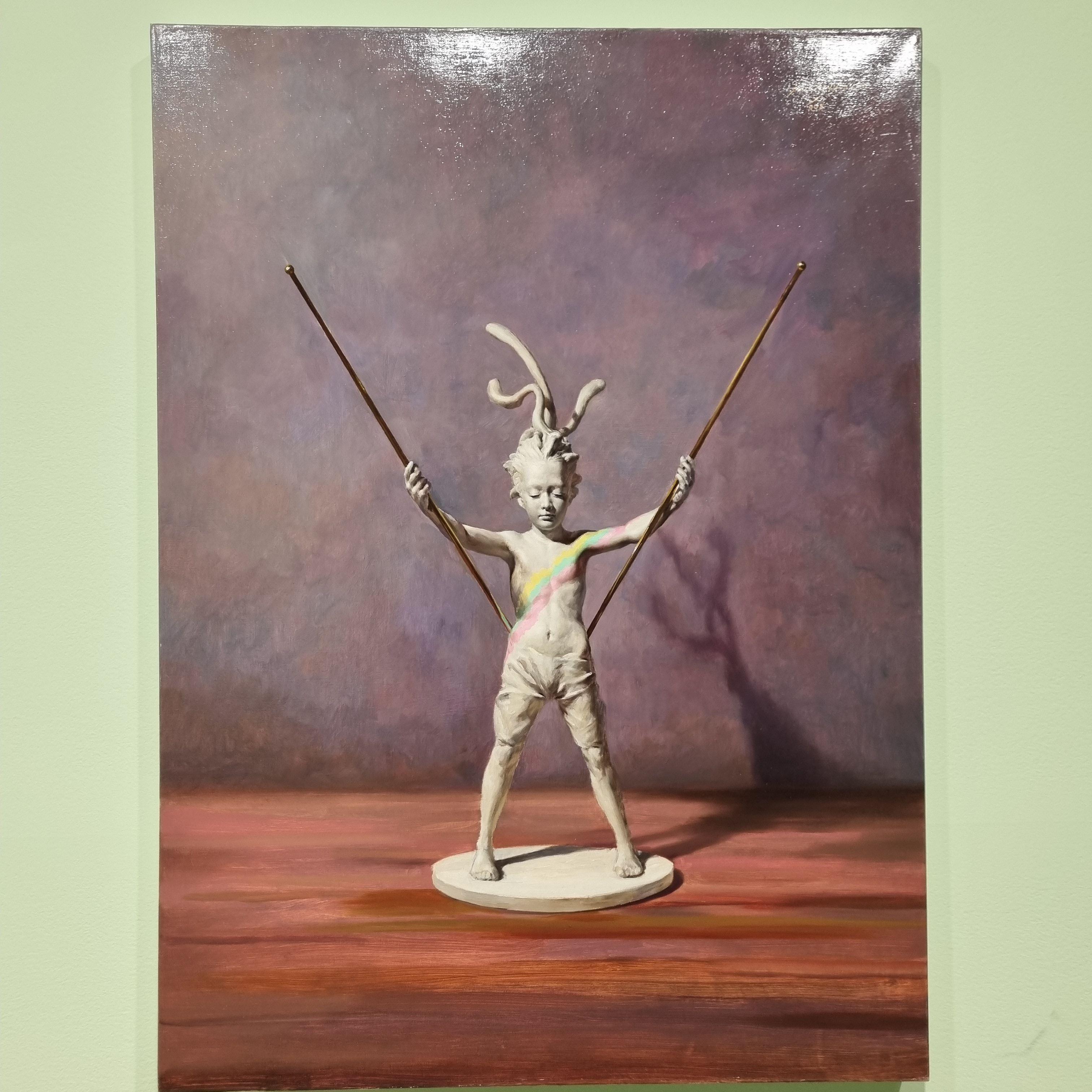 1층의 전시장 한 가운데 있는 조각 <엘카드몬>은 소설 <라포르 서커스>와 <두 개의 깃발>에 등장하는 목각인형으로, 두 세계를 잇는 캐릭터입니다.