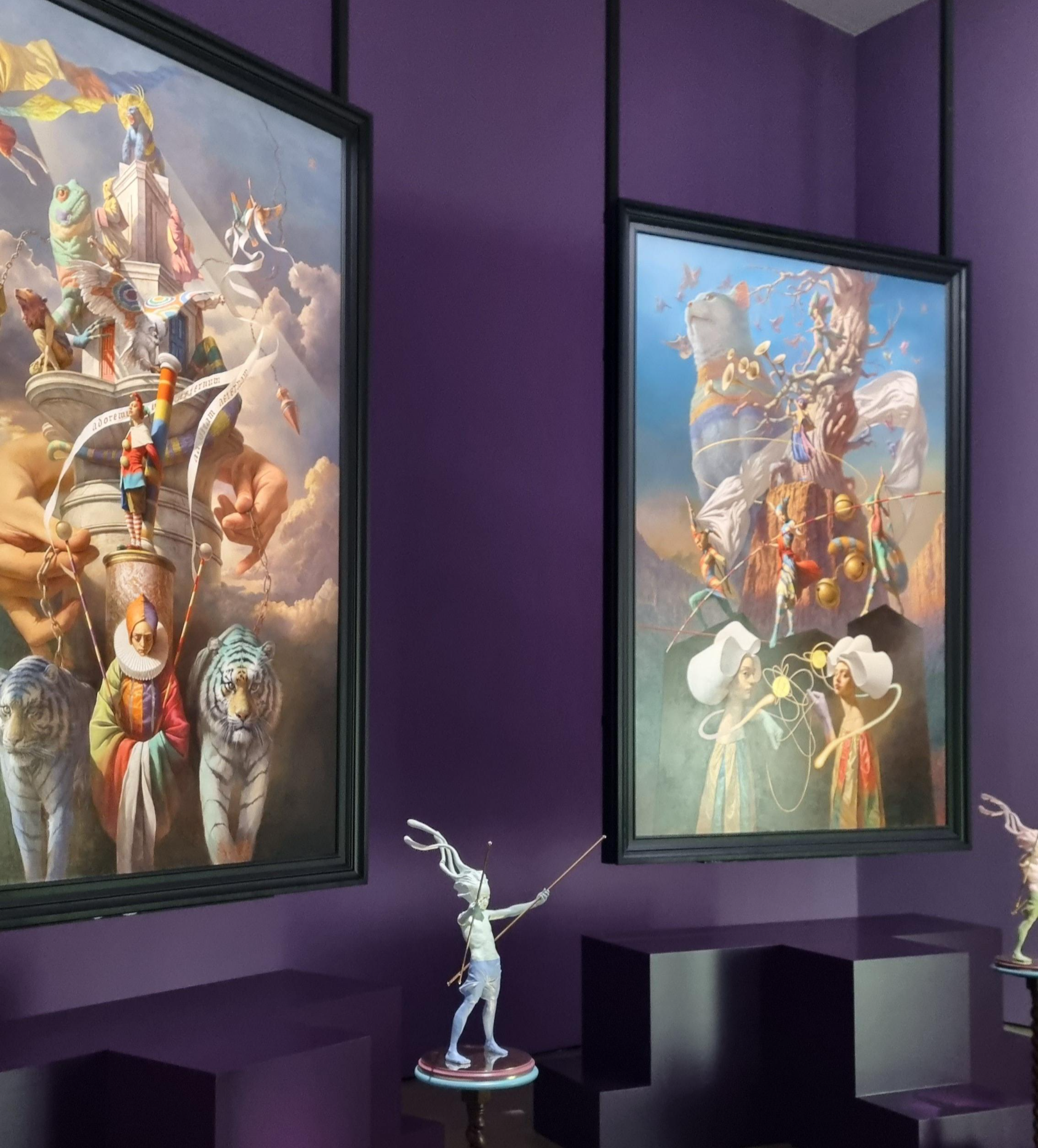 2층 전시장 한쪽에서 거대한 작품 두개를 만날 수 있는데, 2020년 출간된 그의 소설 <두 개의 깃발>에 등장하는 화가 사피에르가 죽기전 마지막으로 그린 작품을 표현했습니다.
