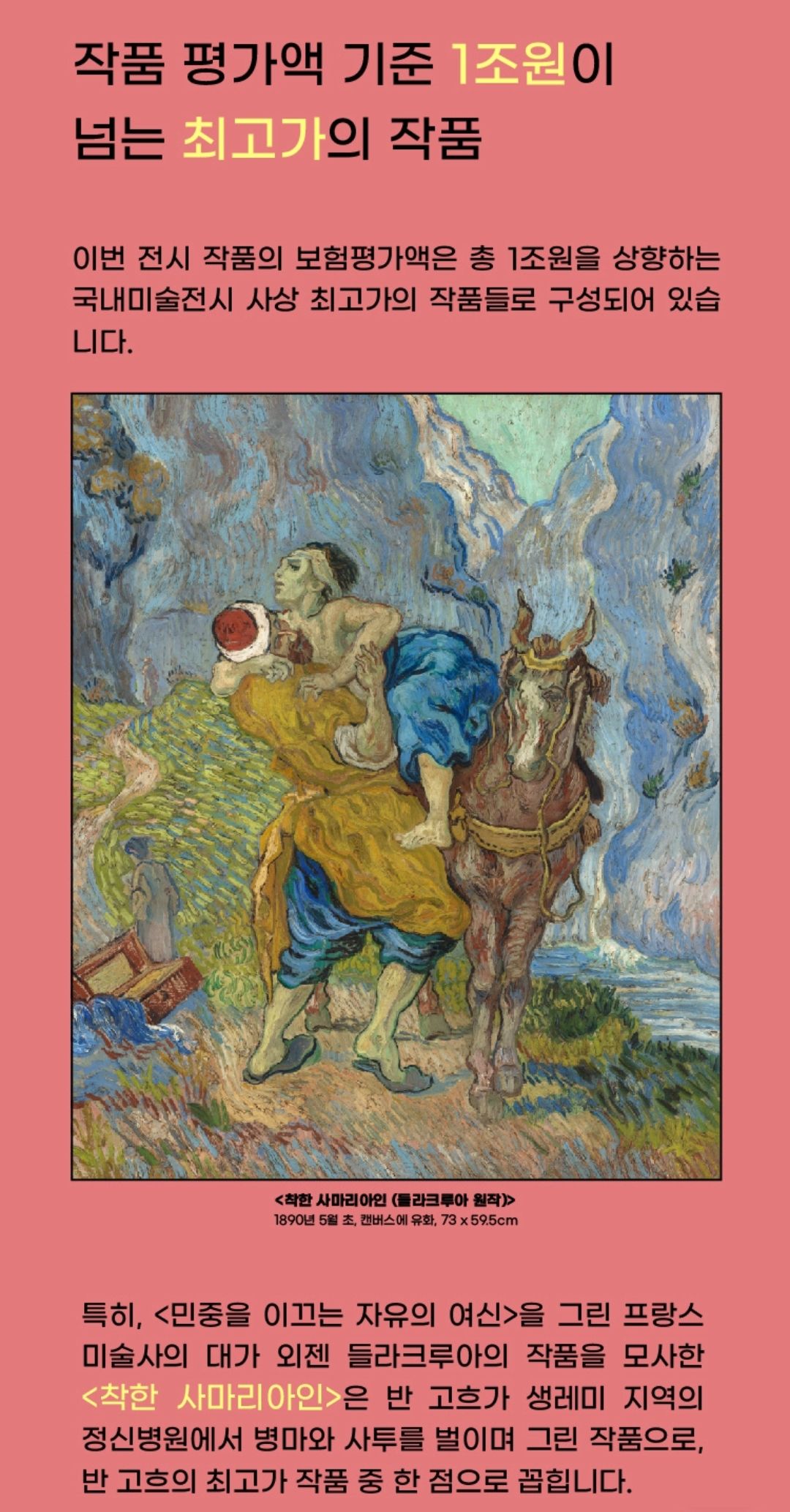 특히 <민중을 이끄는 자유의 여신>을 그린 들라크루아의 작품을 모사한 <착한 사마리아인>은