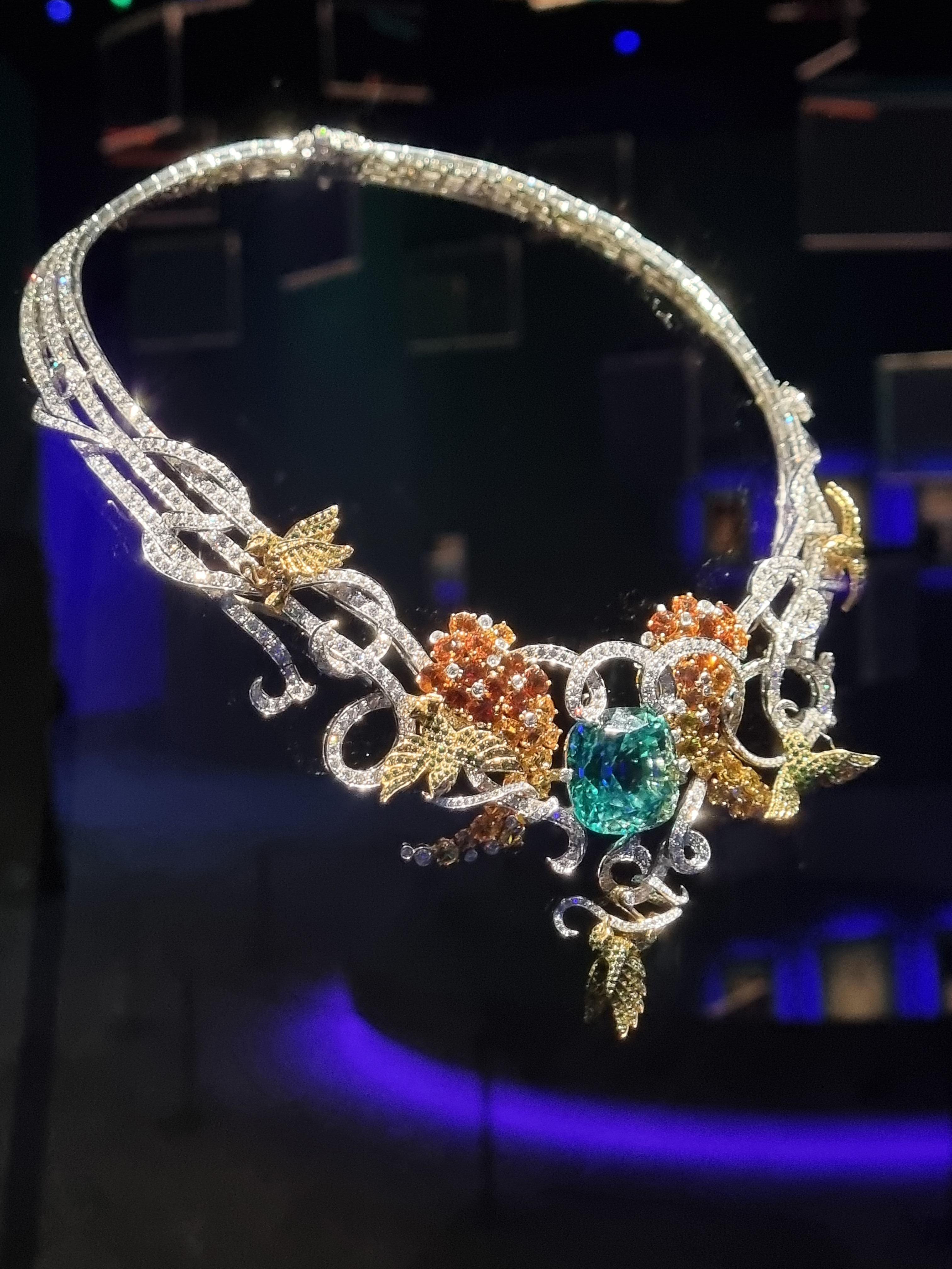 1969년 파리에서 열린 오리엔탈 무도회의 장식을 재해석한 작품이며, 가넷 비즈의 라인들이 폭포처럼 펼쳐내는 실루엣과 작품 중심에 배치된 50.79캐럿의 옐로우 사파이어로 온화한 컬러를 강조하고 있습니다.