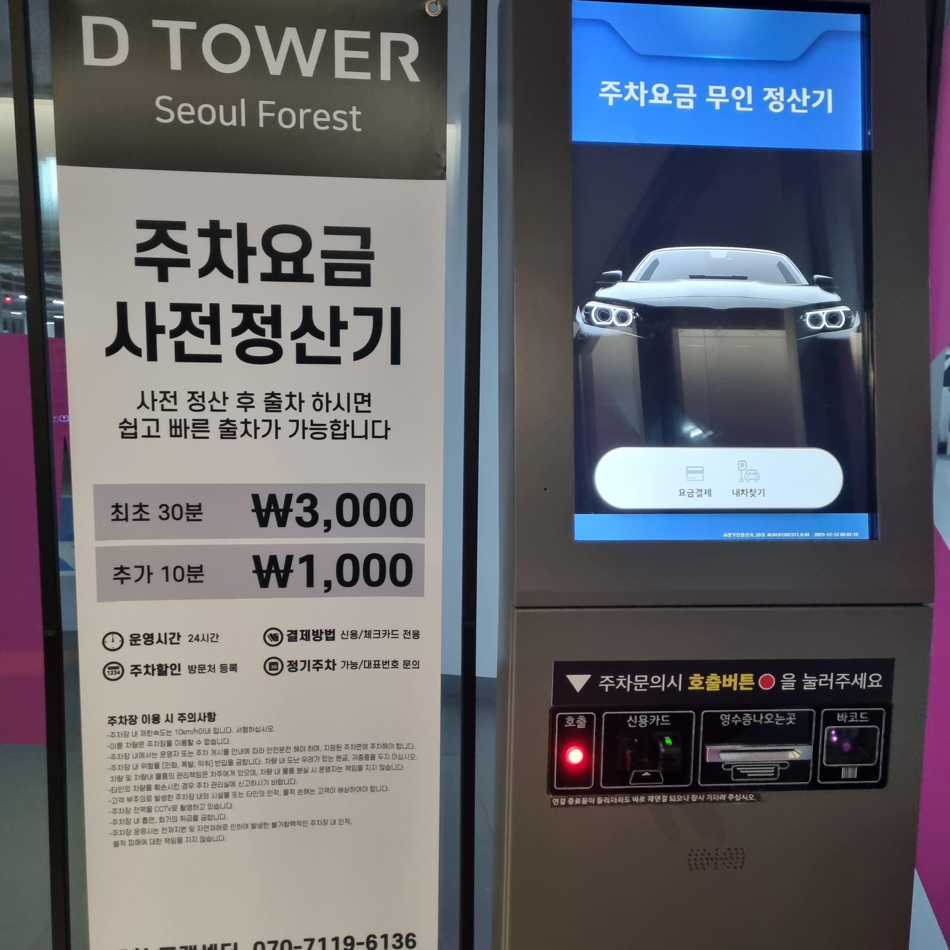 디뮤지엄이 있는 디타워 주차요금은 최초 30분 3,000원이고 추가 10분당 1,000원입니다.