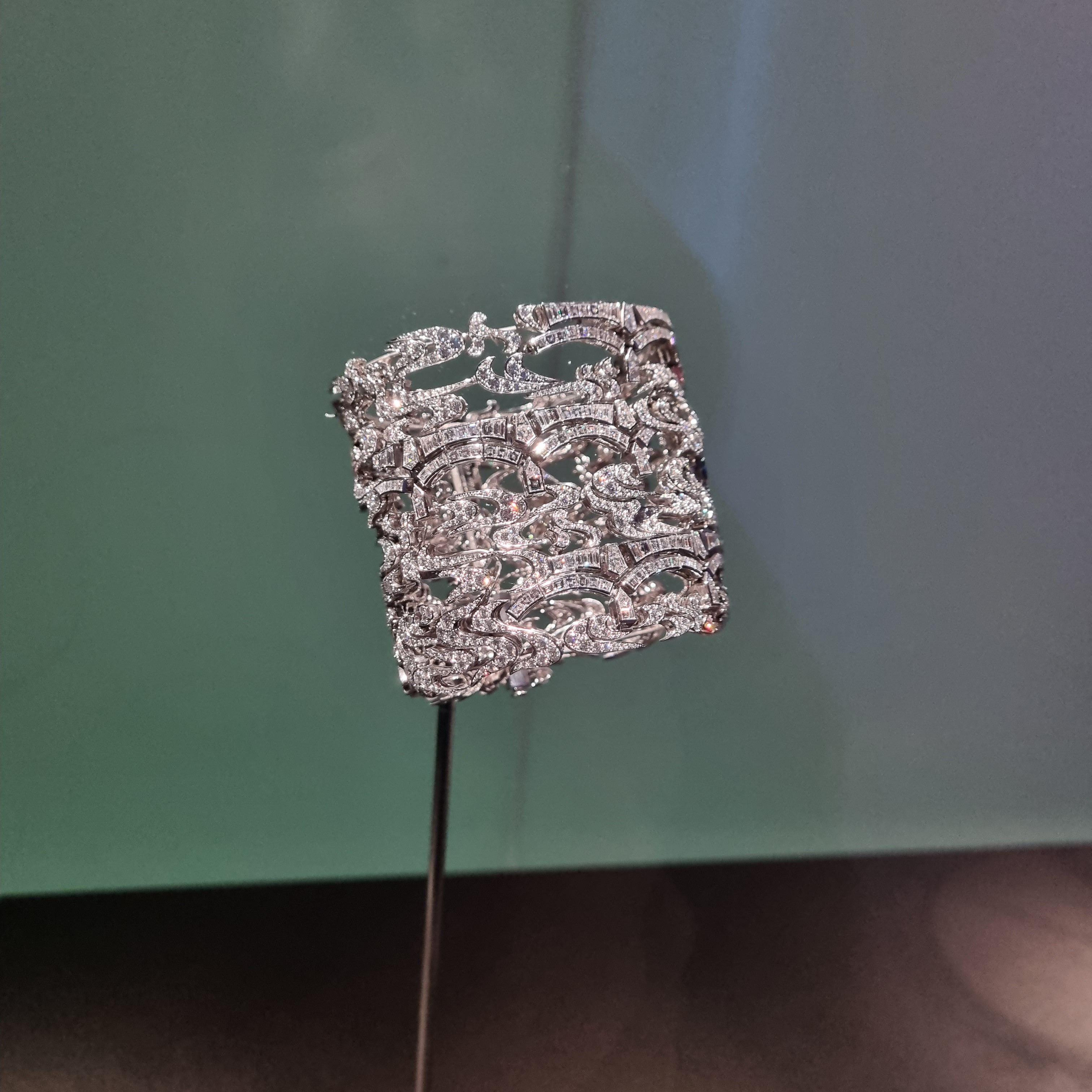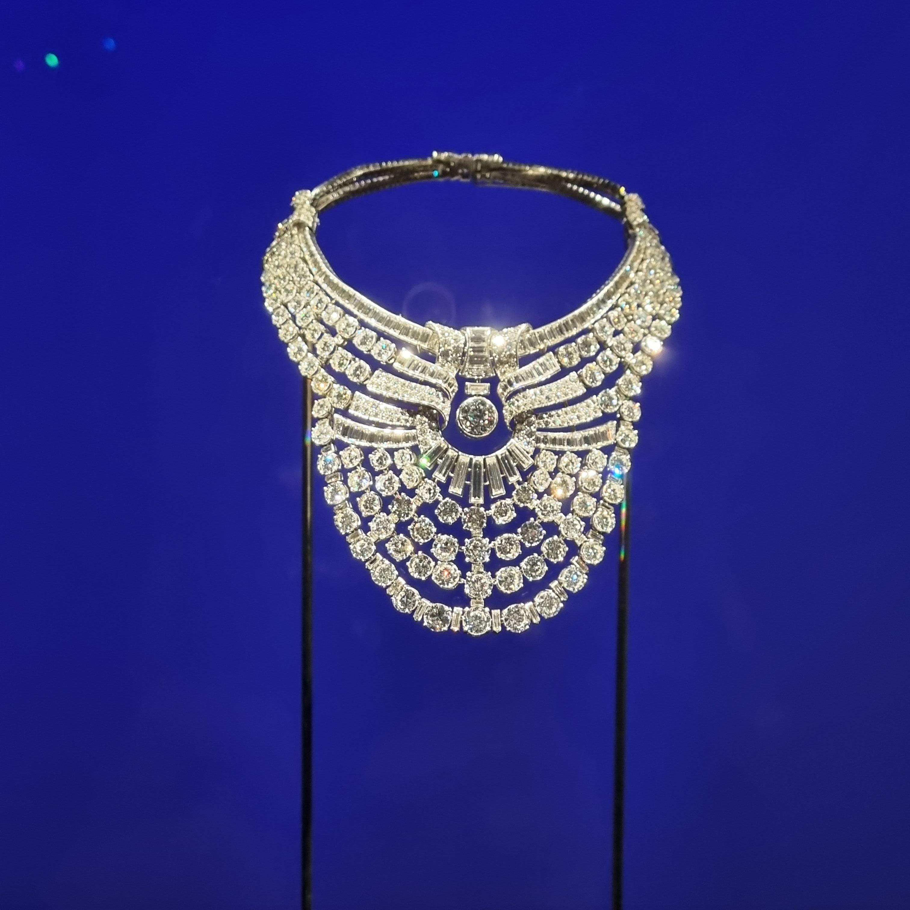 318개의 바게트 컷 다이아몬드들의 라인과 204.03캐럿의 355개 라운드 다이아몬드들의 라인이 완벽한 대칭을 이루며 아르데코 양식을 표현합니다.