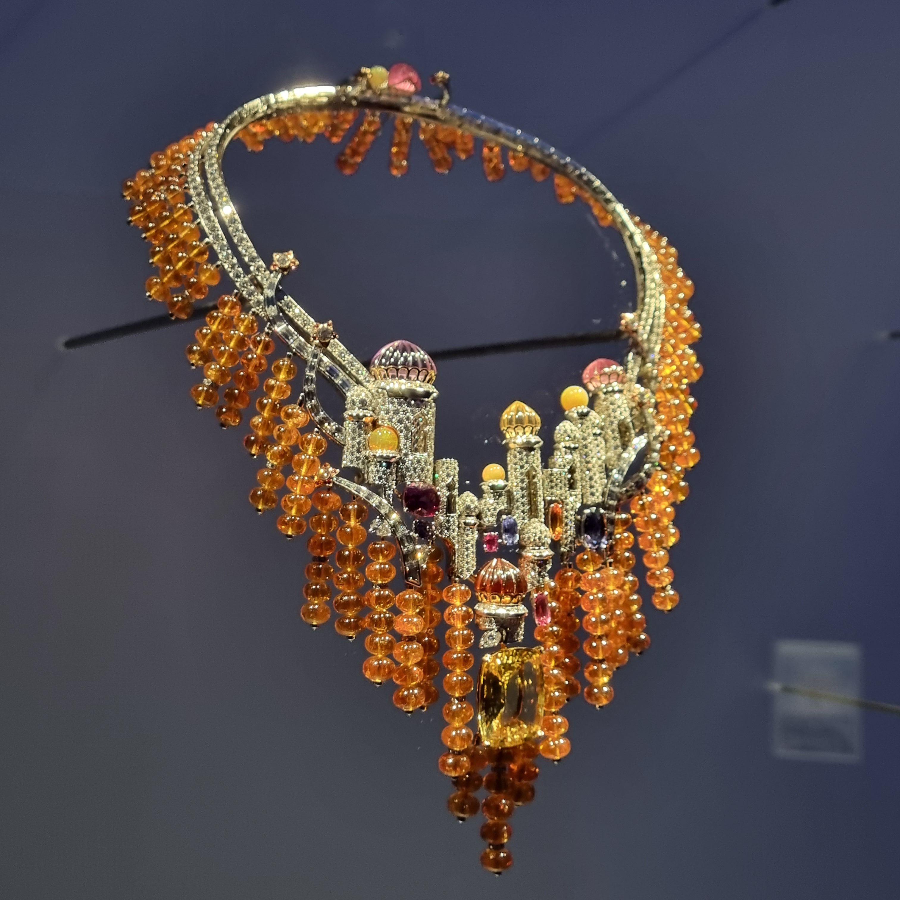 1969년 파리에서 열린 오리엔탈 무도회의 장식을 재해석한 작품이며, 가넷 비즈의 라인들이 폭포처럼 펼쳐내는 실루엣과 작품 중심에 배치된 50.79캐럿의 옐로우 사파이어로 온화한 컬러를 강조하고 있습니다.