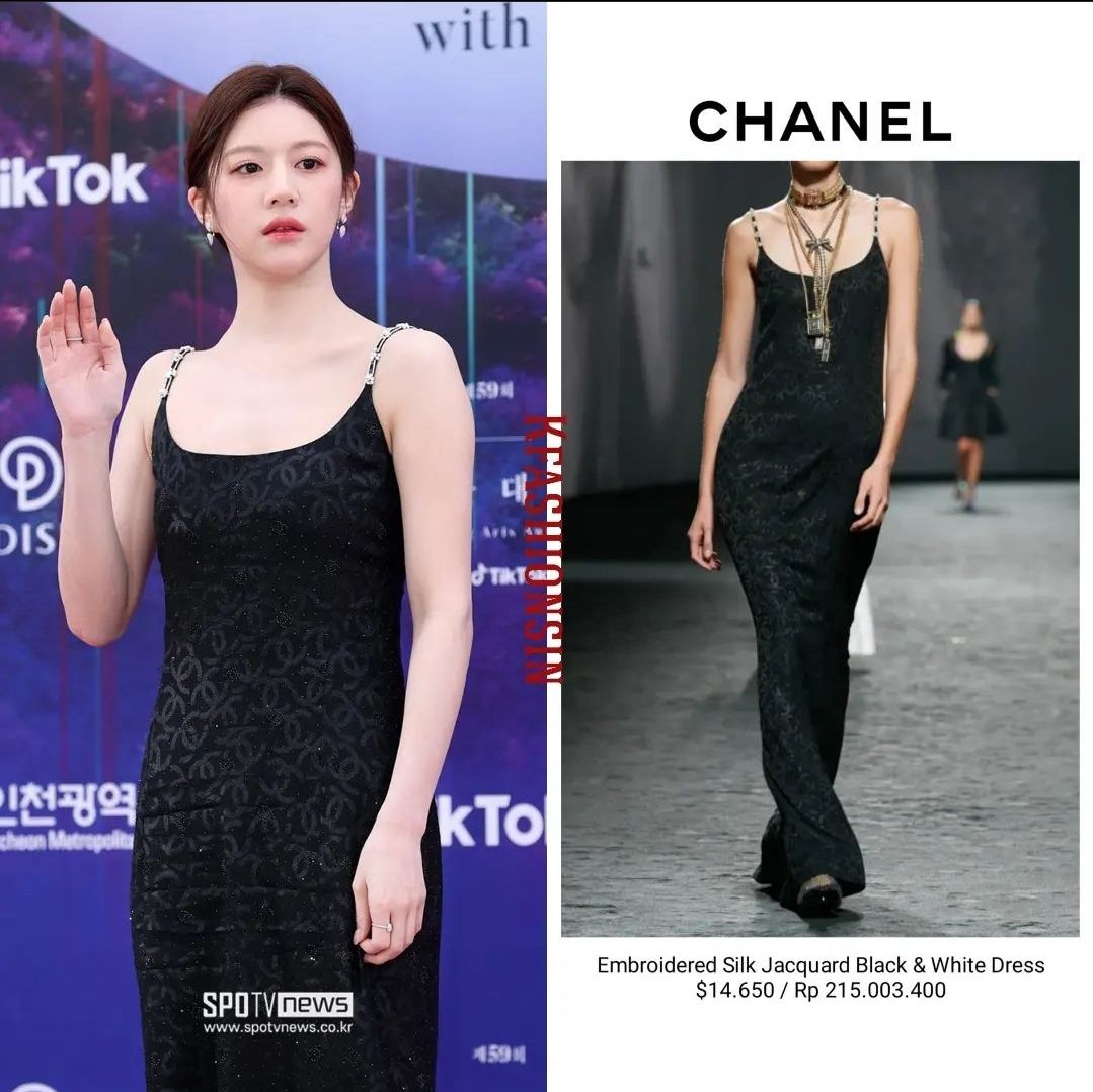 고윤정은 샤넬로고가 박힌 롱드레스를 선택했습니다.