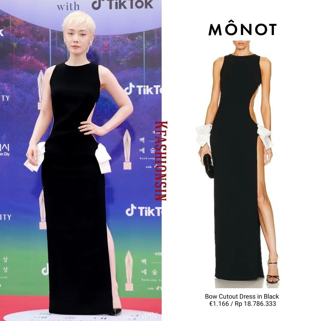 더 글로리에서 인상적인 연기를 펼쳤던 김 히어라는 양쪽 트임이 있는 과감한 블랙드레스를 선택했네요.