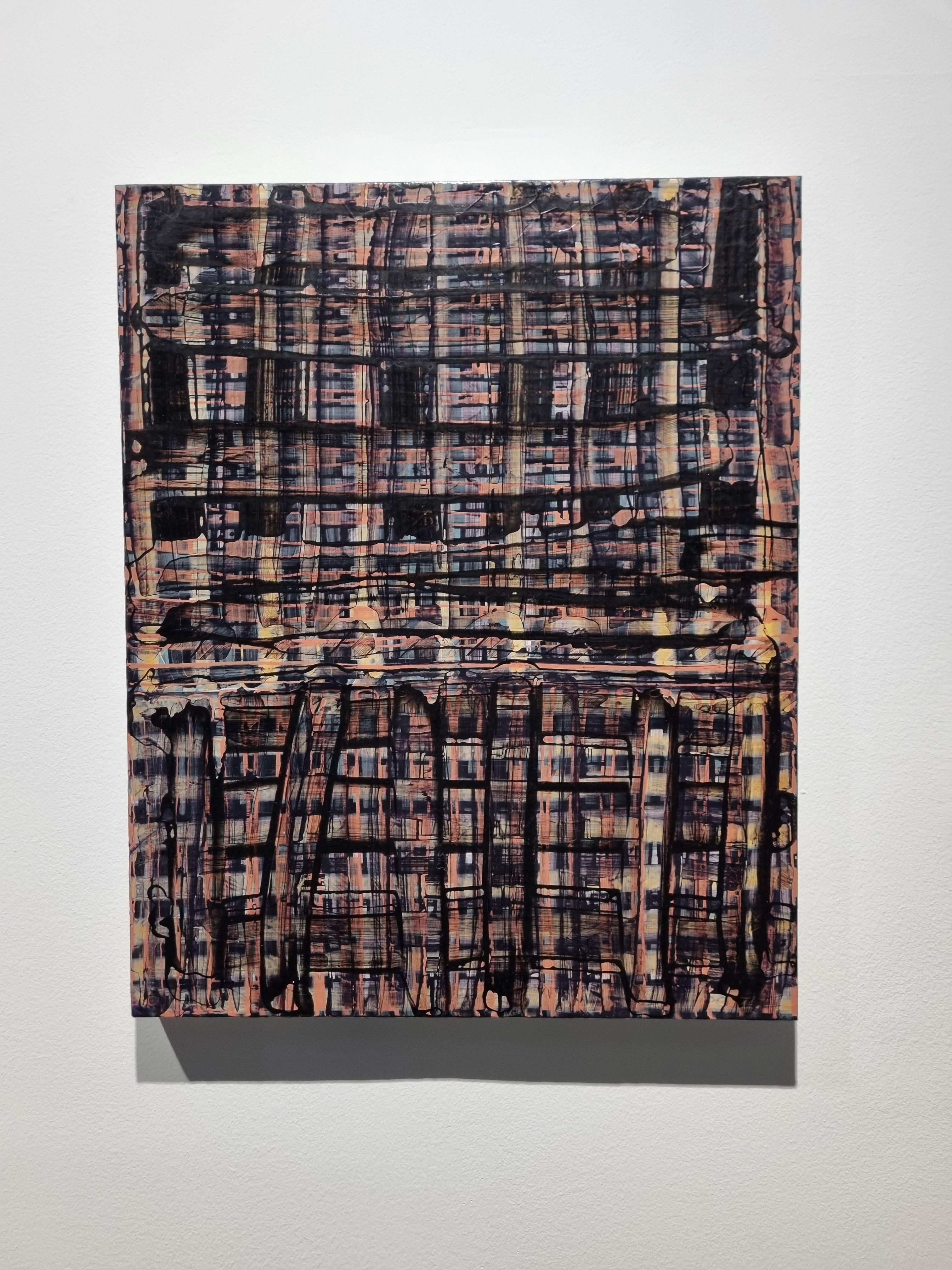 최근 작업에서는 수공으로 한 땀 한 땀 제작된 화문석과 차가운 금속의 격자 프레임을 겹쳐 두께와 공간감을 부여하기도 하는데,