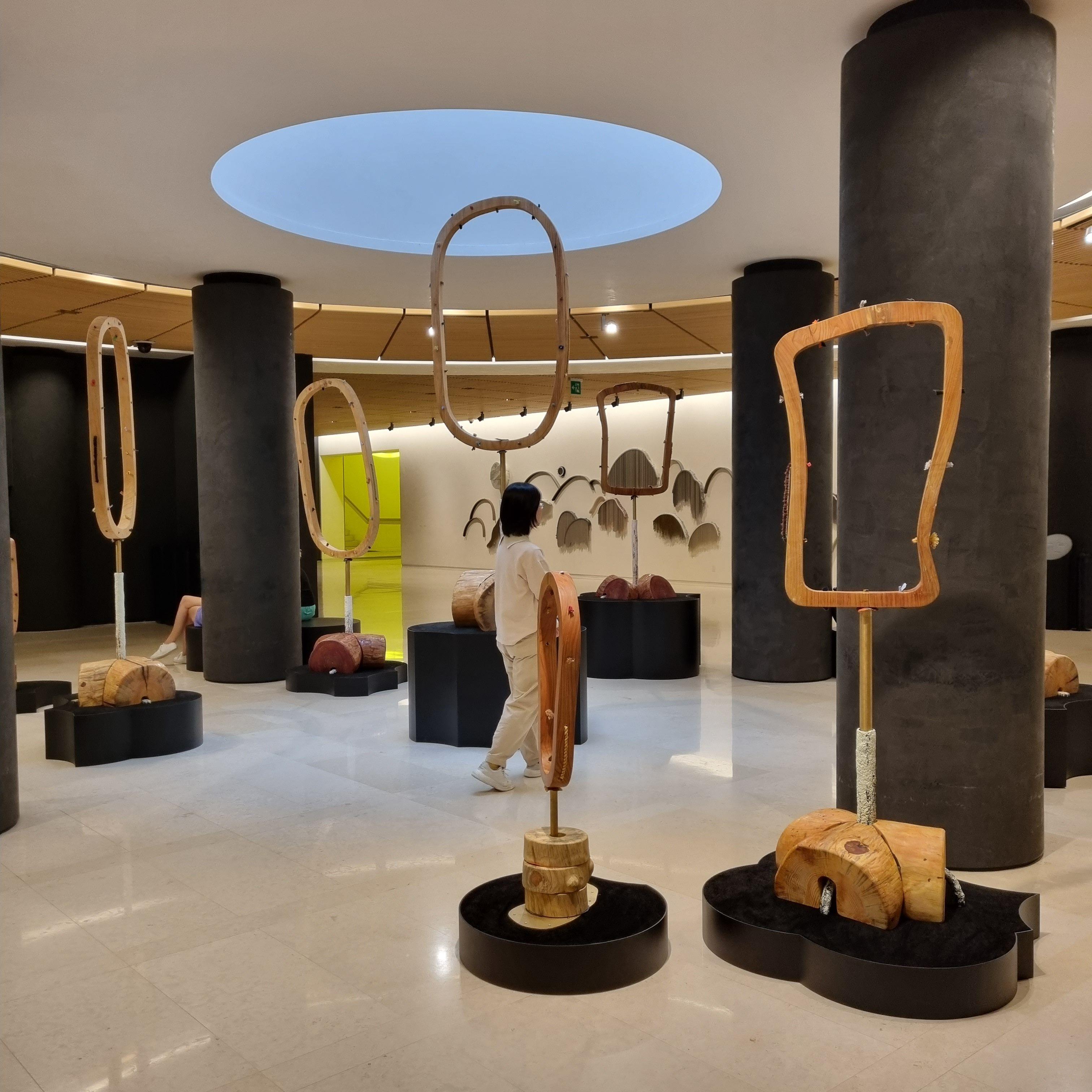 나무로 된 작가의 신작 조각들이 설치되어 있는데,