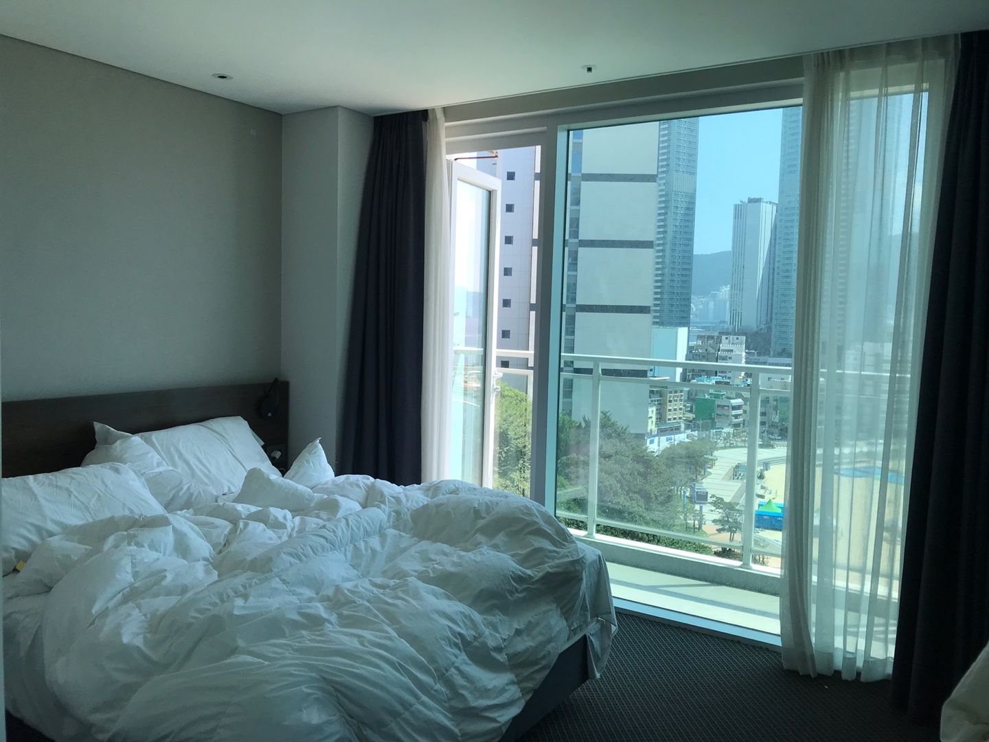 침대에 누워서 바라보는 쨍한 햇빛과 바다 너무 좋았어요.
