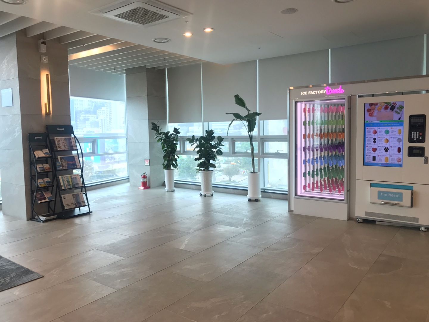 여러가지 자판기도 있고, 로비에서는 예약 서비스 데스크, 투어 안내 서비스, 음료, 아이스크림 주문 서비스 등을 이용할 수 있습니다.