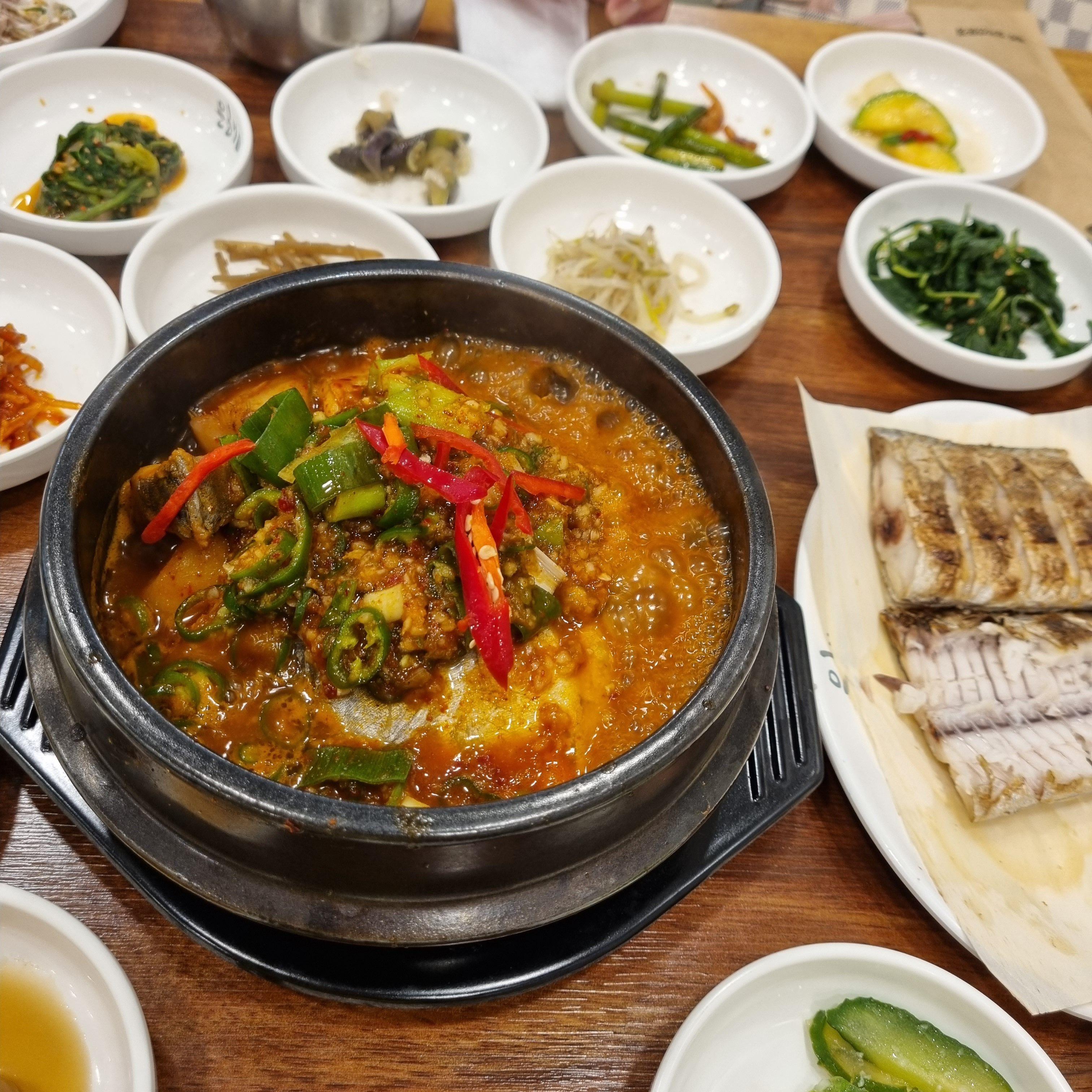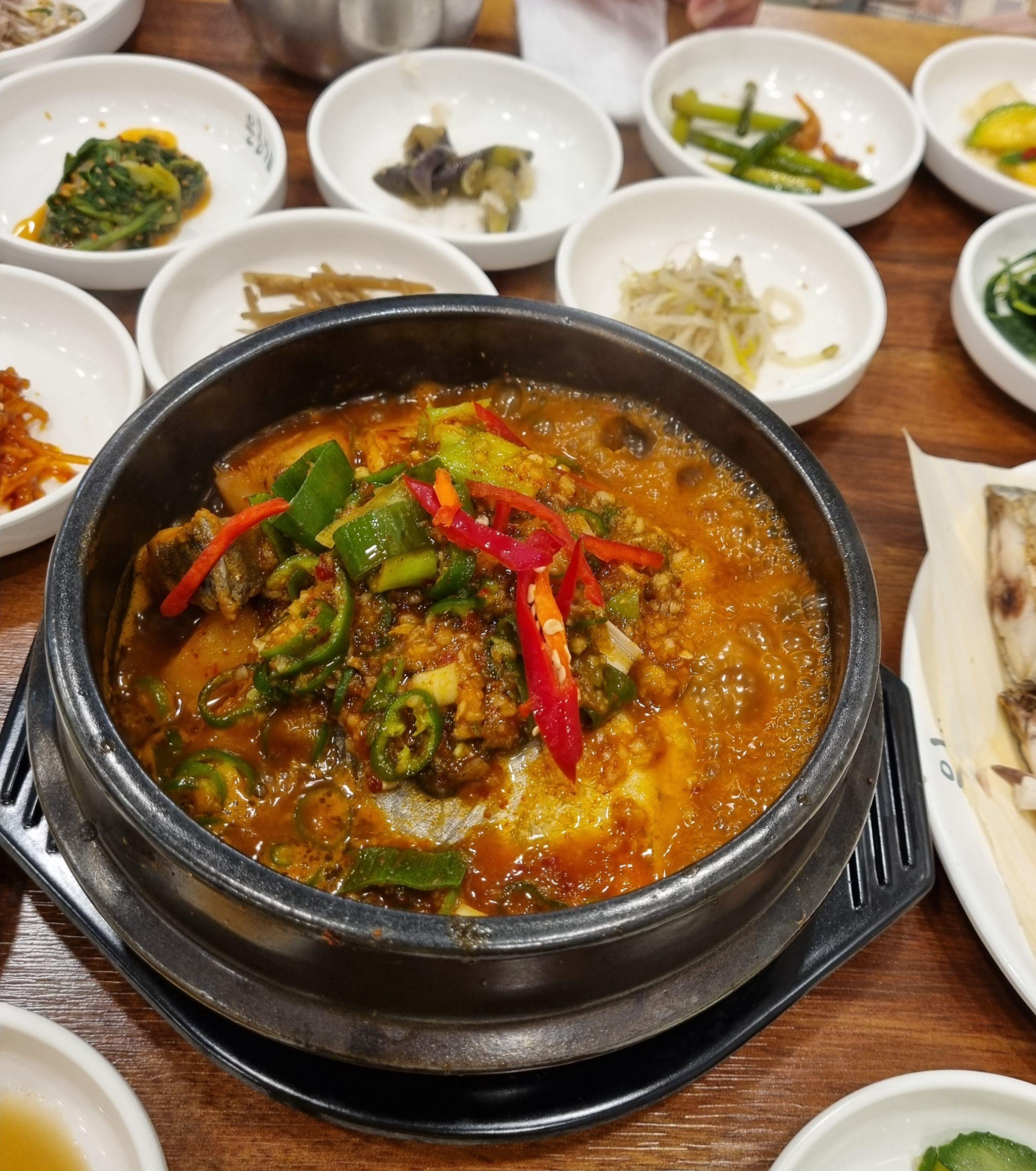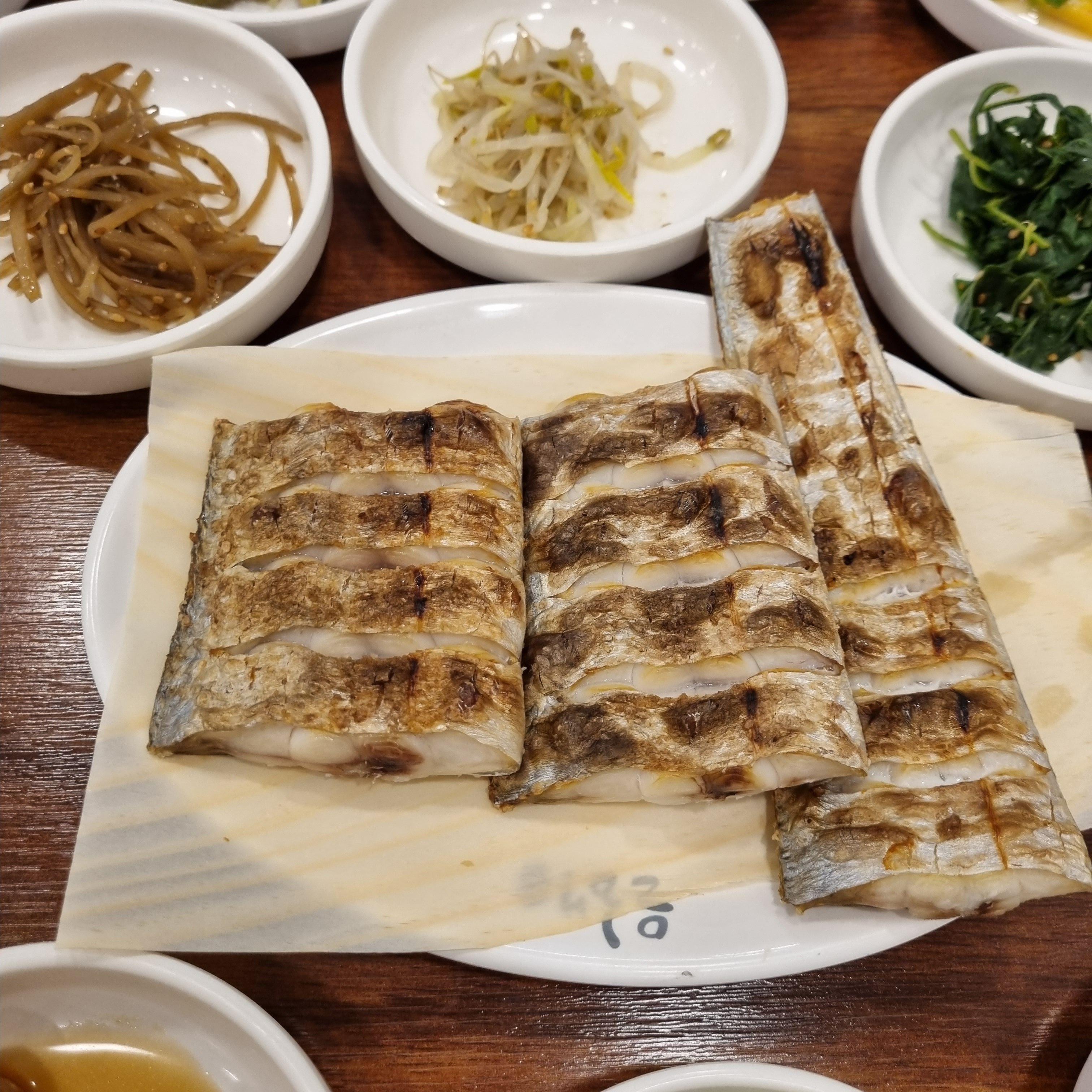 일단 다양하고 푸짐한 밑반찬들을 하나씩 맛보느라 갈치구이를 기다리는 시간이 지루하지 않았습니다.