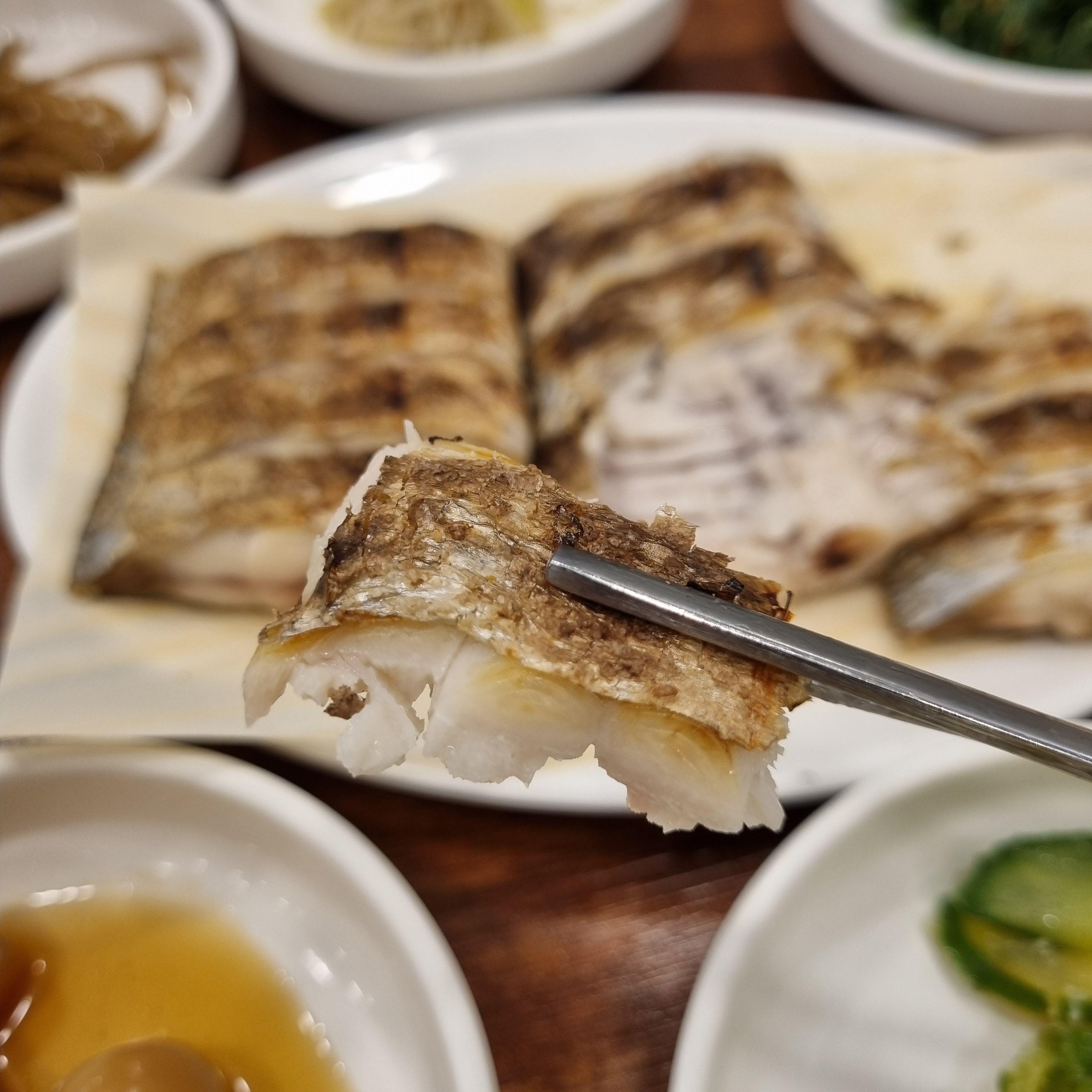 아주 통통한 갈치는 아니었지만(일반사이즈여서 그런듯) 그래도 바싹 구워져나온 비주얼은 제가 딱 종아하는 갈치구이였습니다.