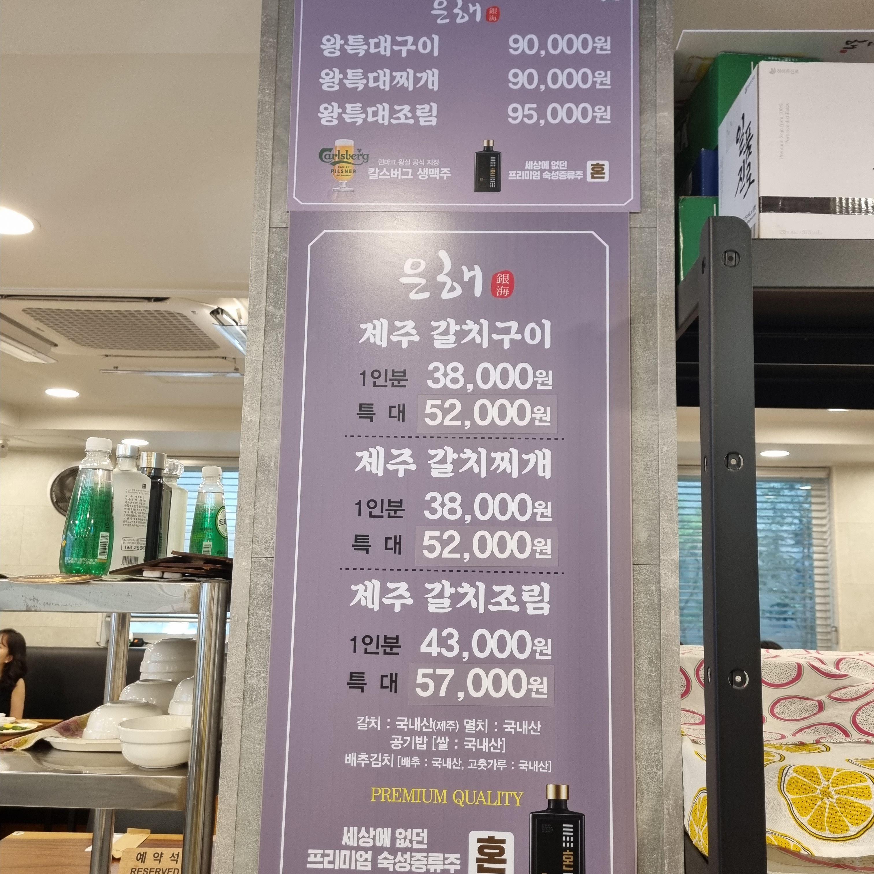 은해갈치는 제주갈치전문점이구요, 갈치사이즈는 일반사이즈와 특대, 왕특대가 있습니다.