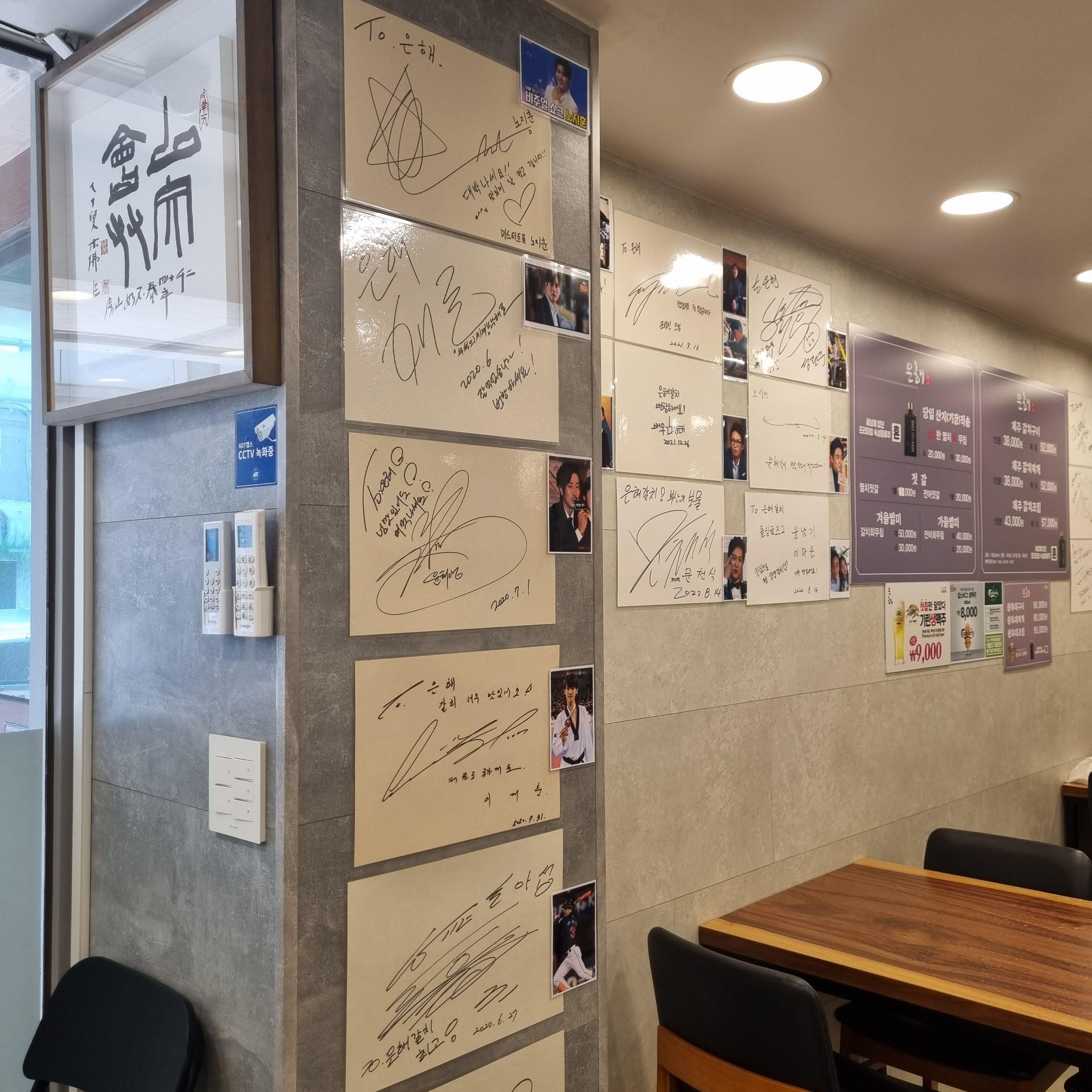 깔끔한 가게안으로 들어서면 여러 연예인들이 다녀간 흔적들이 보입니다.