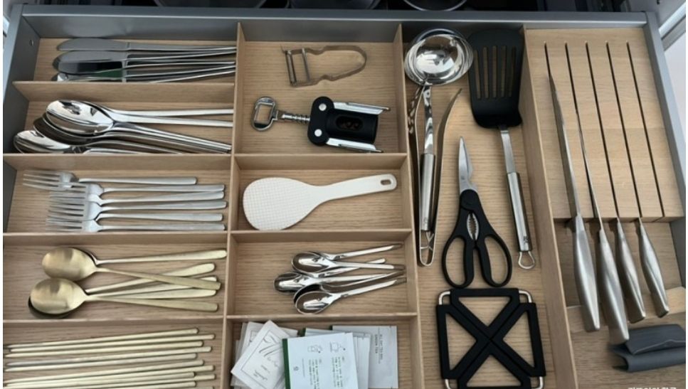 씽크대 서랍안에 수저 젓가락 등 모든 주방기구가 다 있습니다.
