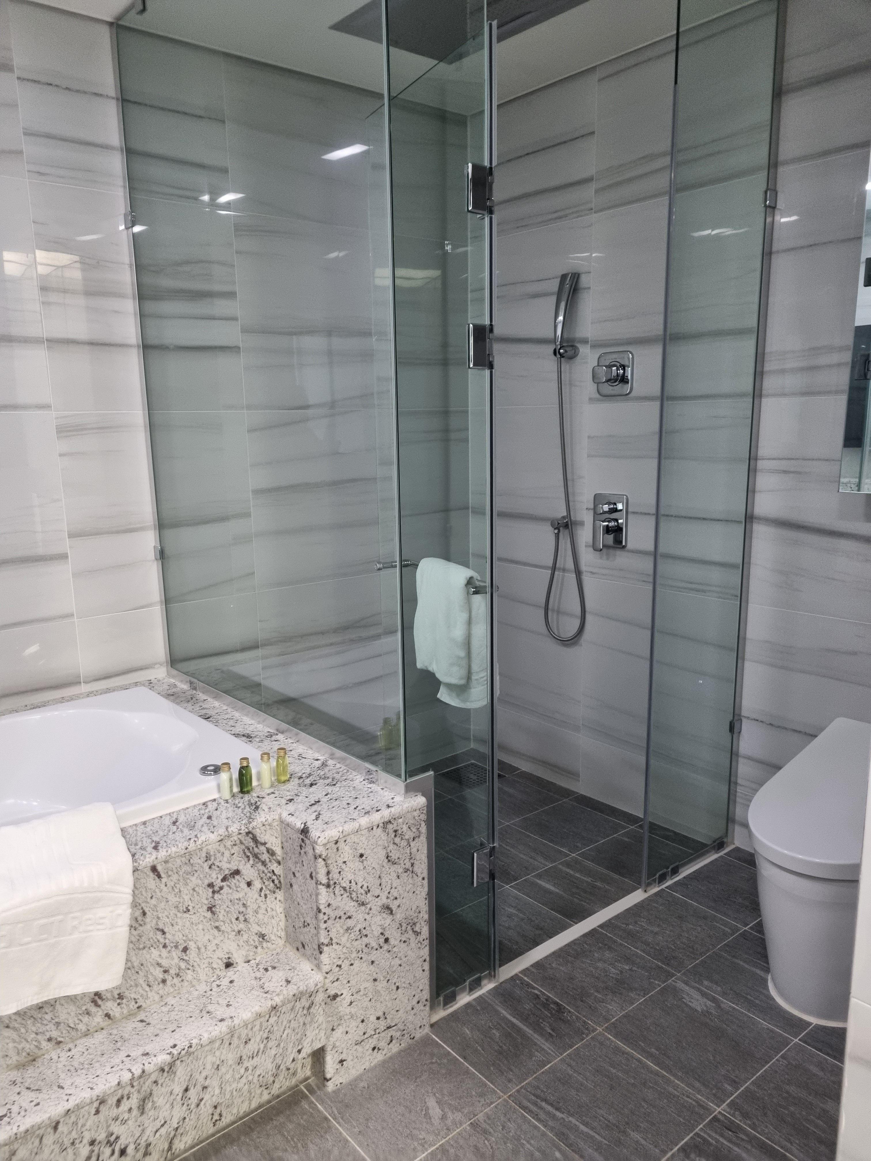 커다란 욕조가 있고(티비가 달려있고 초인종이 울리면 눌러서 문을 열어줄수도 있어서 편리합니다!)