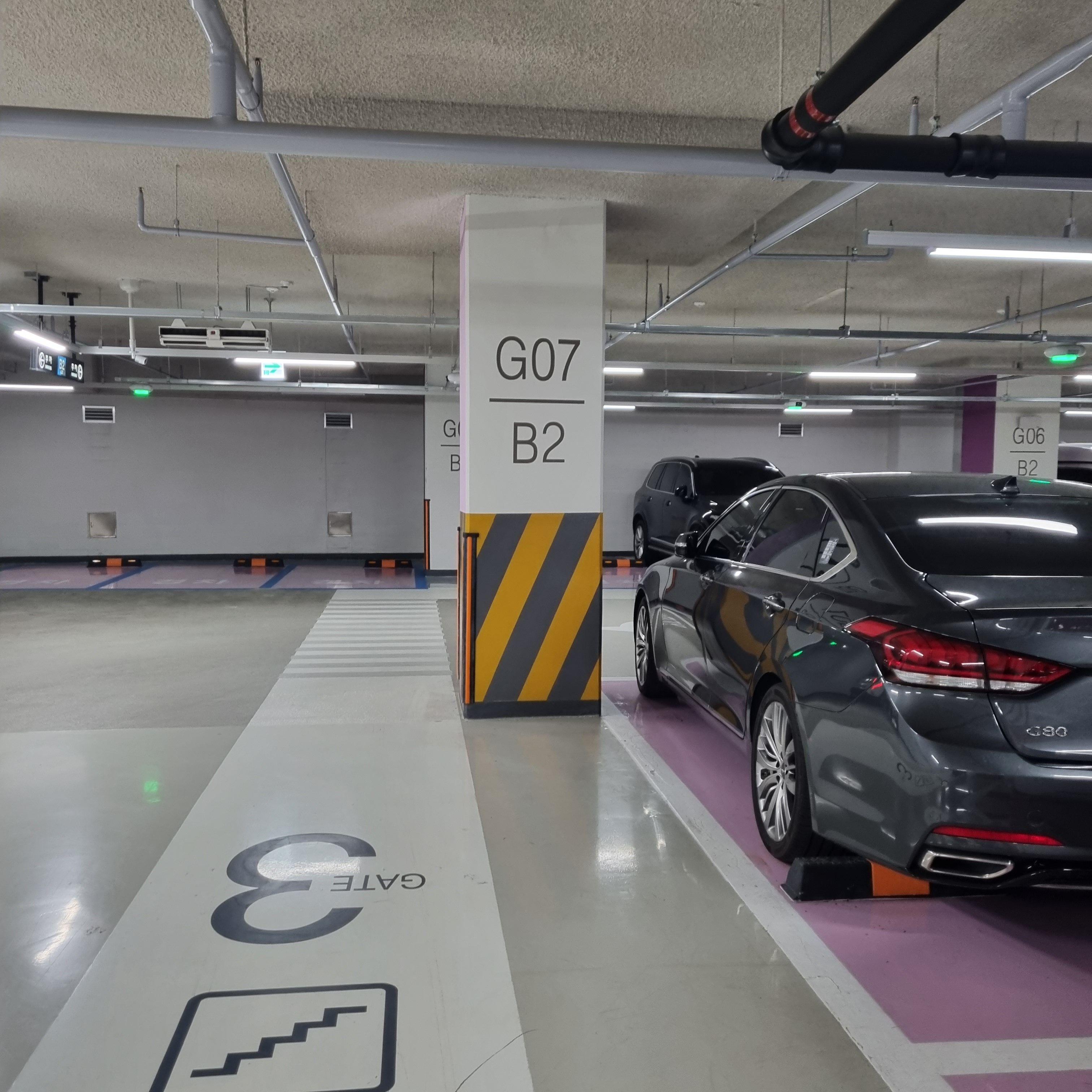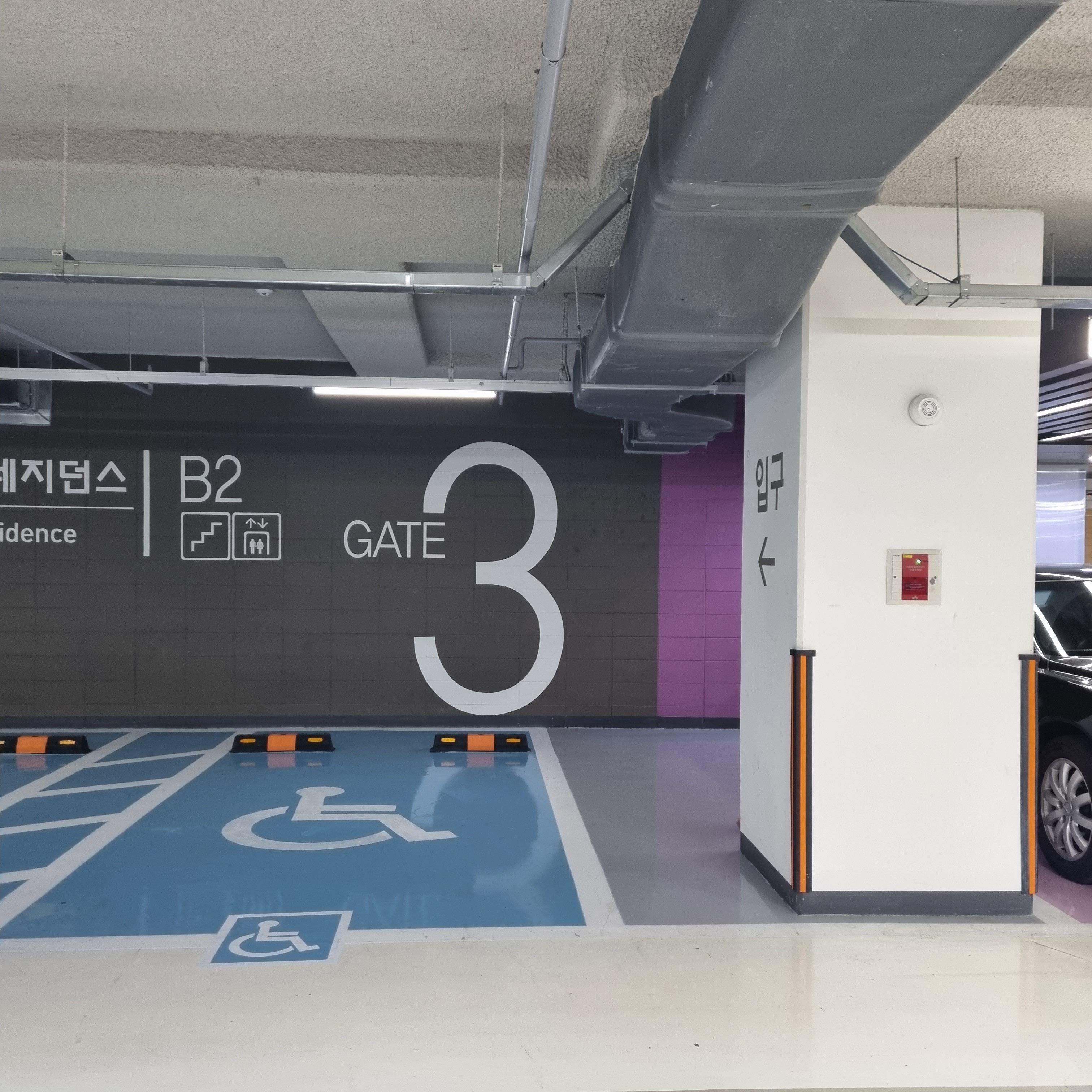 안내해주신대로 엘시티 큐브 분수대를 끼고 좌회전해서 지하 2층 주차장으로 내려와서 게이트 3번과 가까운 곳에 주차했습니다.