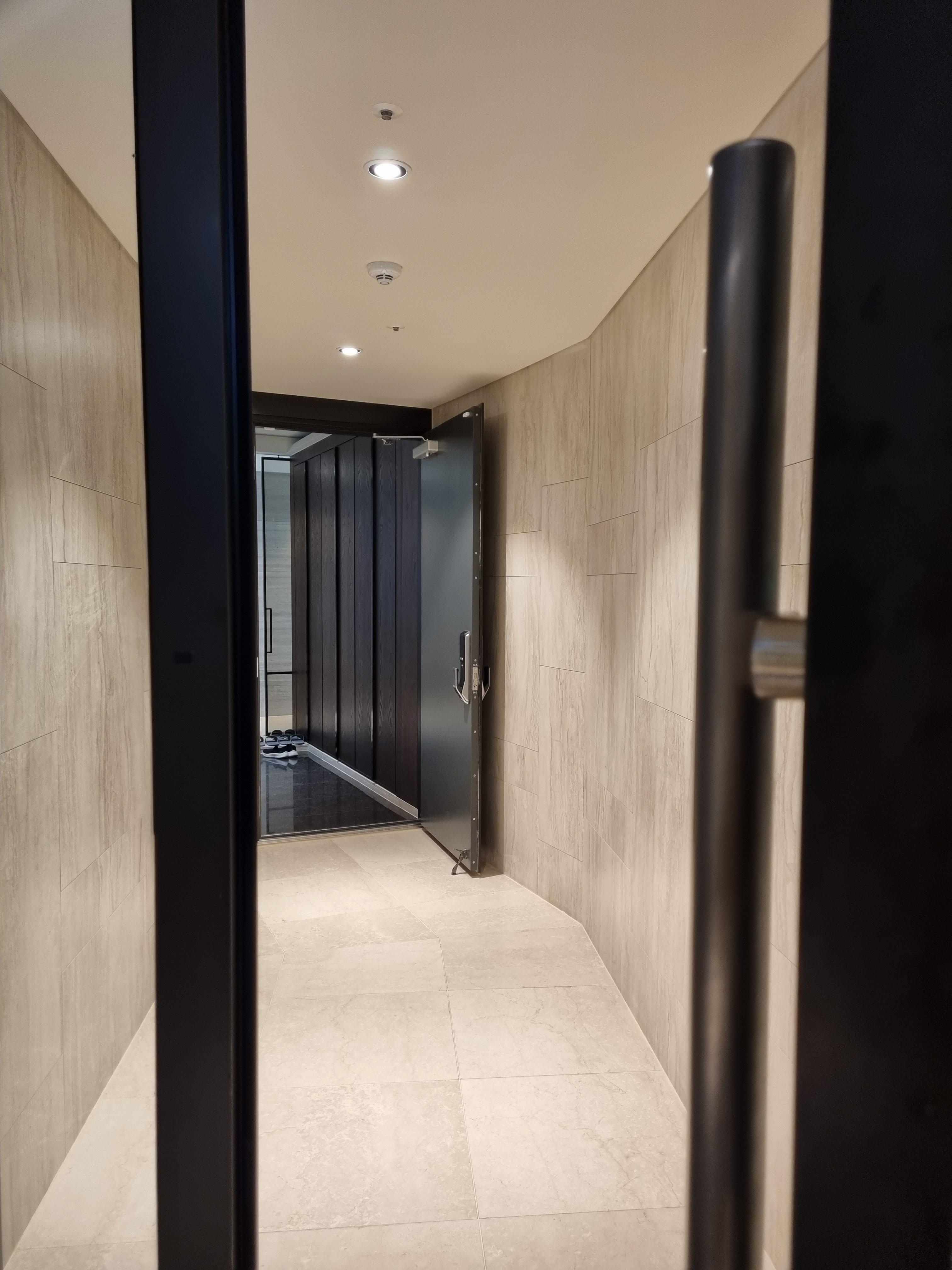 지하 2층에서 지상 로비로 올라와 엘레베이터를 한번 갈아타고 올라갑니다.