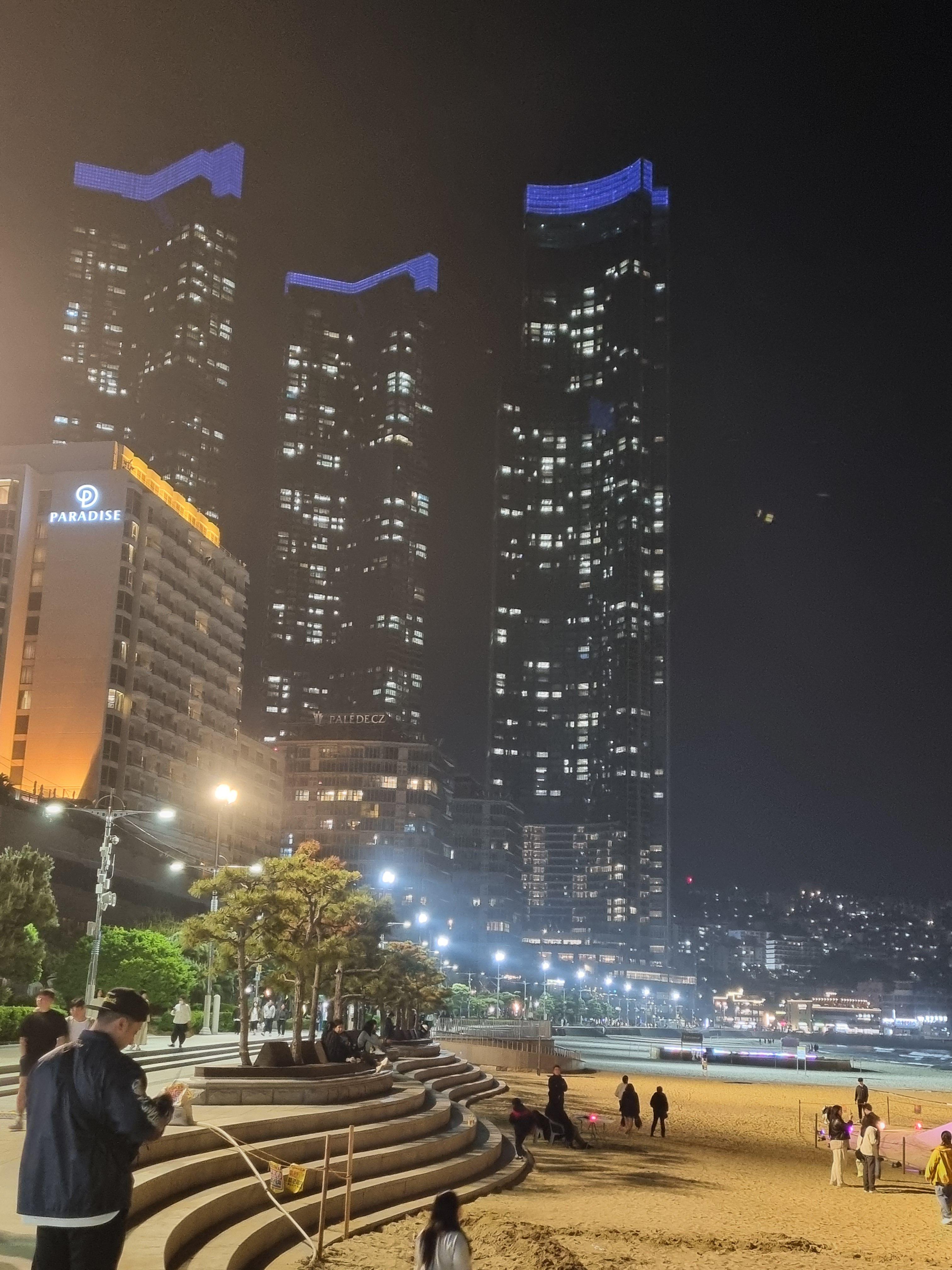 해운대 엘시티 레지던스는 낮에도 속이 뻥뚫리는 뷰이지만 해가 지면 야경이 또 멋집니다.