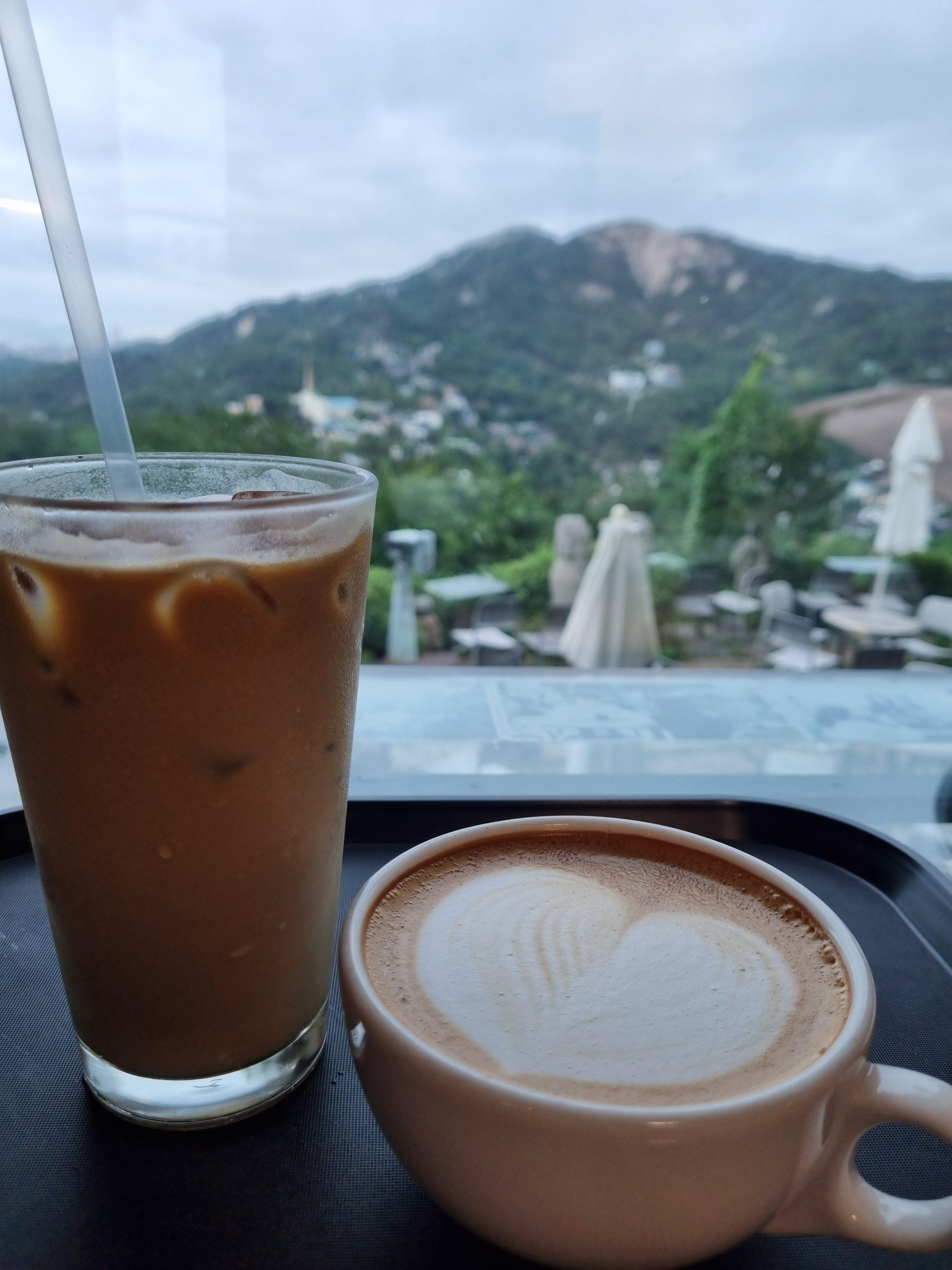 커피맛은 가격에 비해서 아주 특별할건 없었지만 안구가 시원해지는 산뷰는 정말 최고였어요. 안에 있지만 밖에 있는 느낌을 동시에 받을 수 있는 산모퉁이카페.
