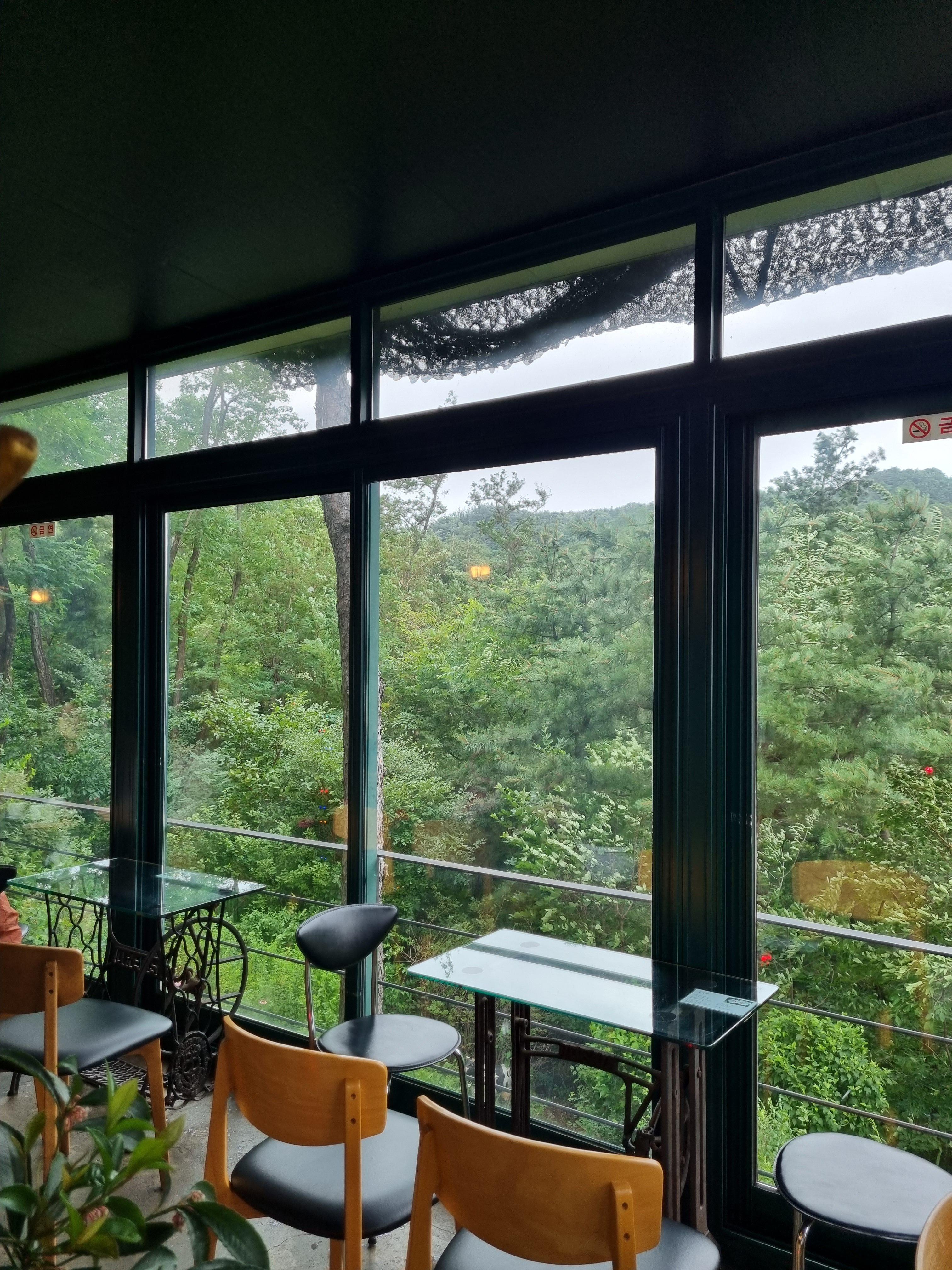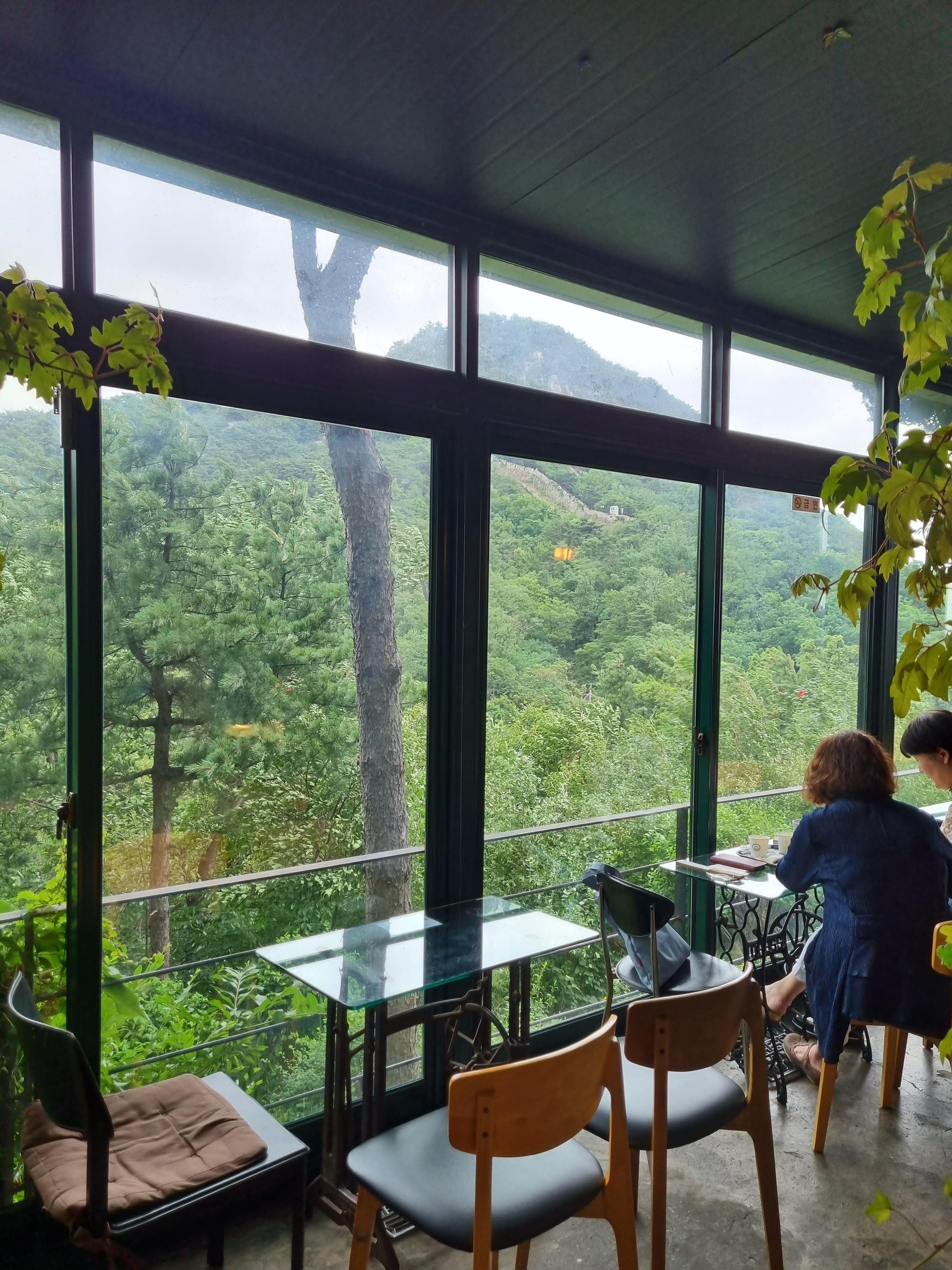 카페에서 보는 뷰인데 마치 등산와서 보는 기분이었어요. 보이는 것들은 다 나무와 산들.. 너무 좋았습니다.