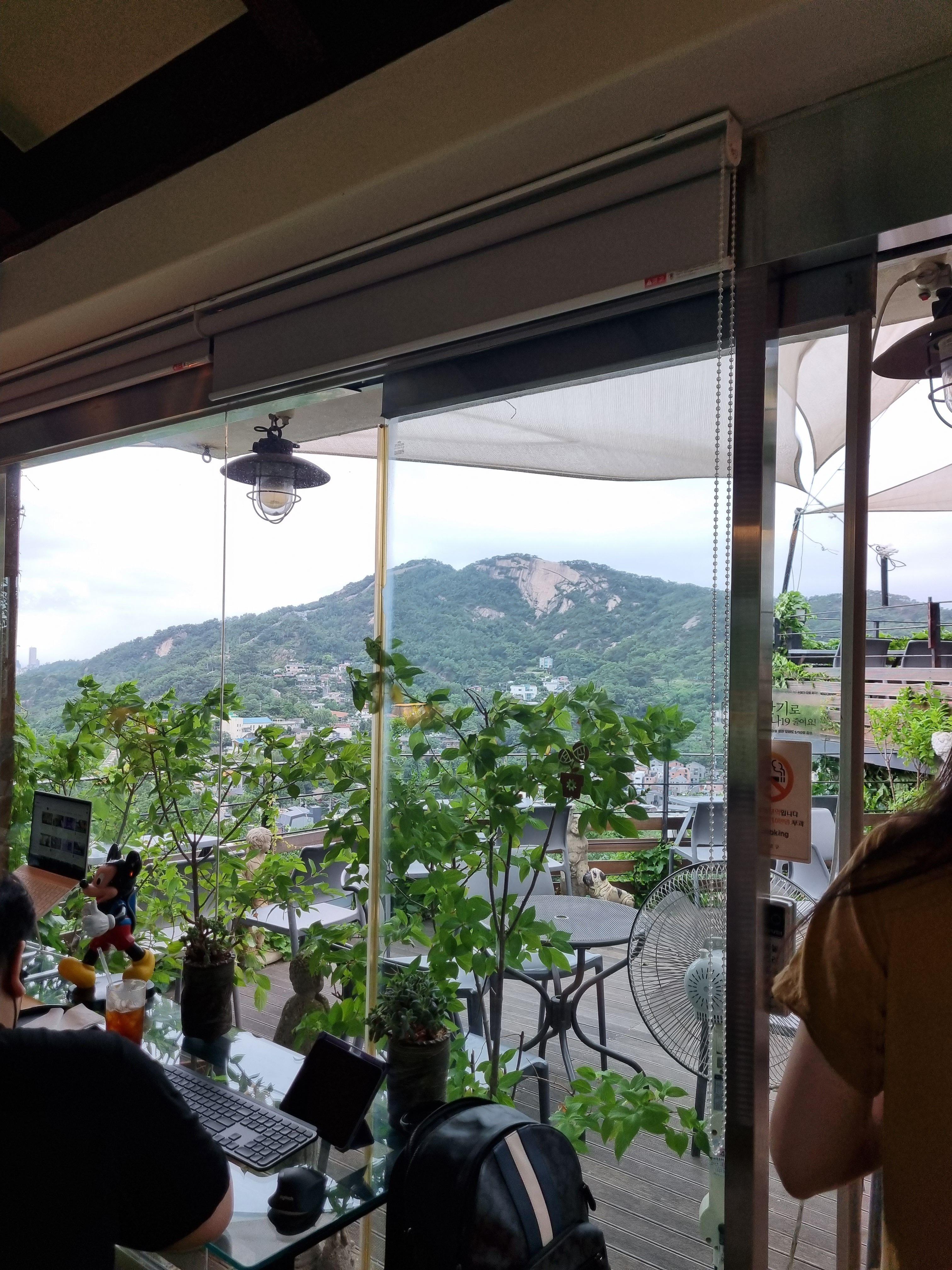 카페에서 보는 뷰인데 마치 등산와서 보는 기분이었어요. 보이는 것들은 다 나무와 산들.. 너무 좋았습니다.