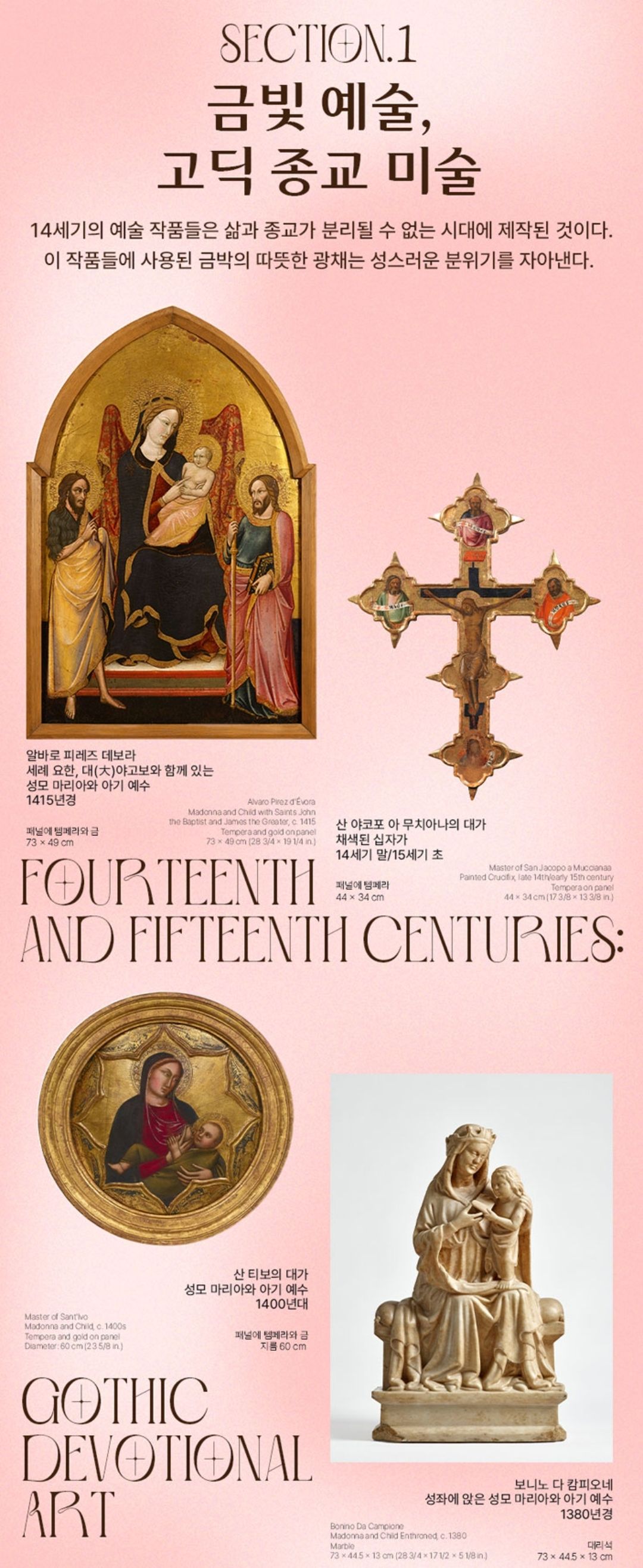 삶과 종교가 분리될 수 없었던 14세기의 고딕 종교 예술이 첫번째 섹션을 장식하구요,
