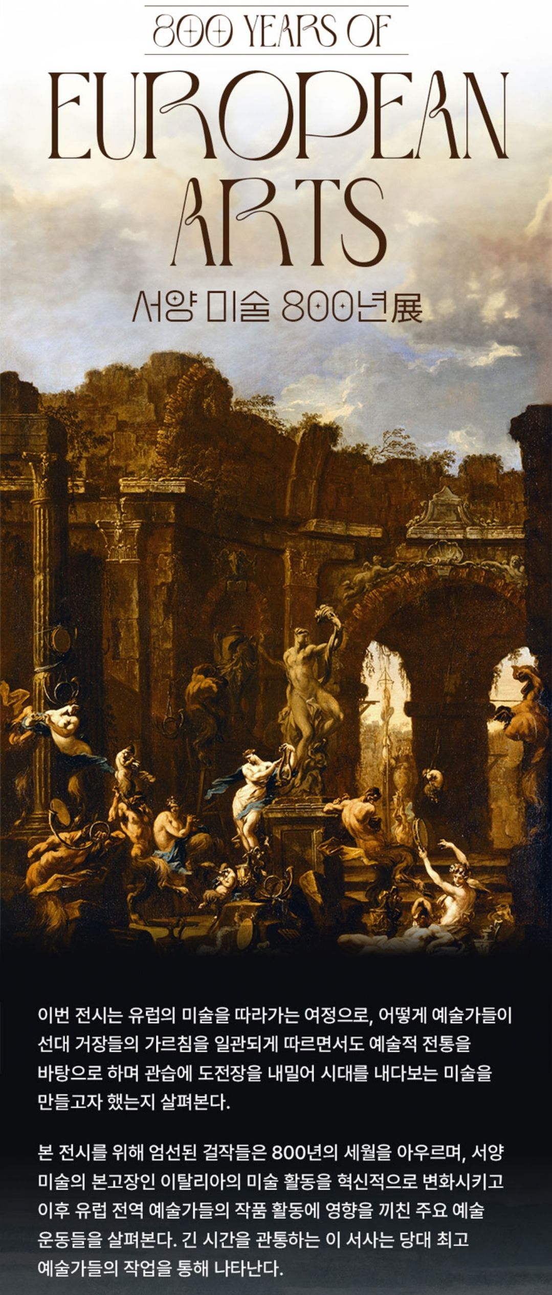 제목그대로 유럽의 고전 미술 거장부터 근현대 거장들의 작품까지 800년 역사의 서양미술사를 그대로 만나볼 수 있습니다.