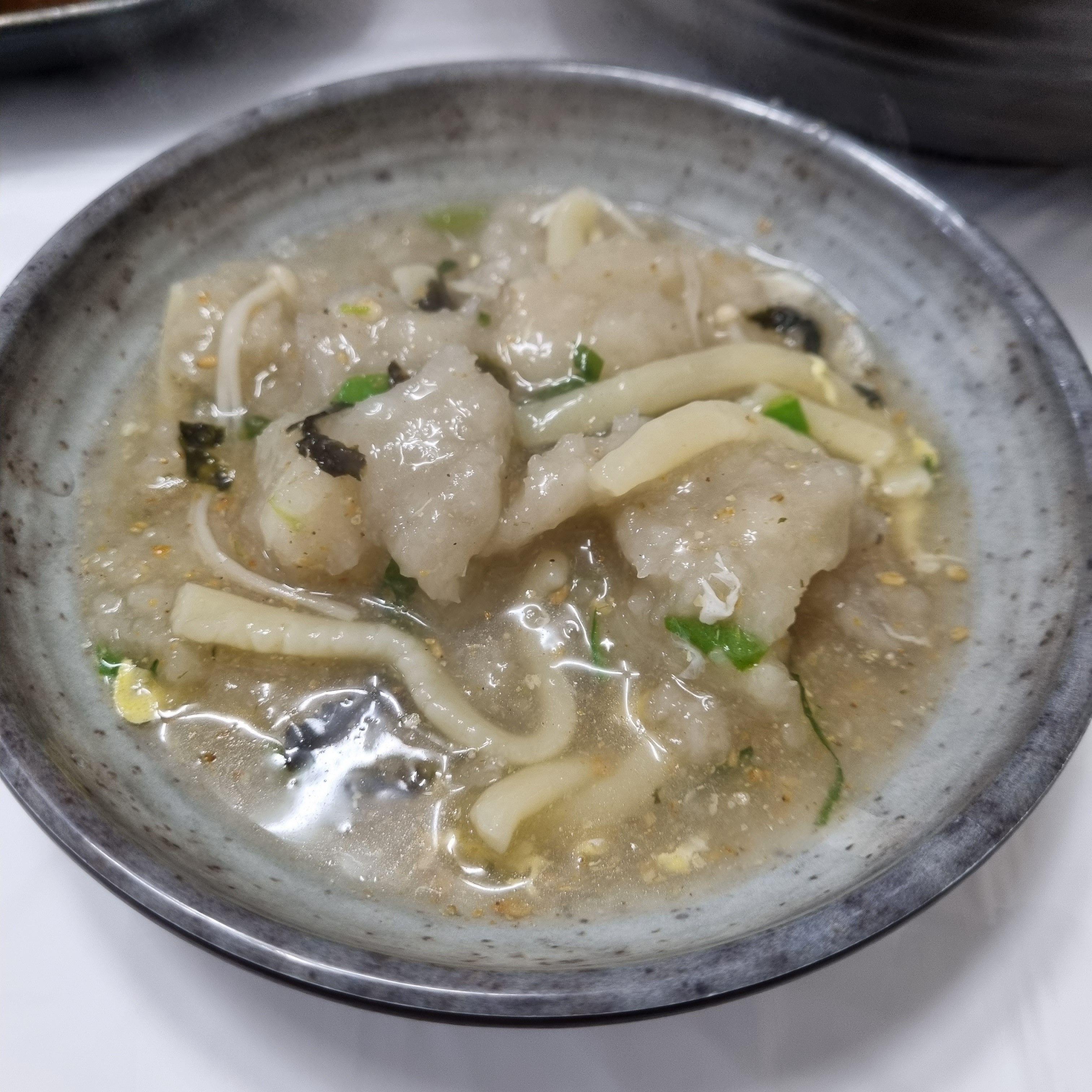 감자옹심이 태어나서 처음 먹어봤는데 감자가 씹히는 맛이 너무 맛있고 속도 든든하니 좋았습니다.