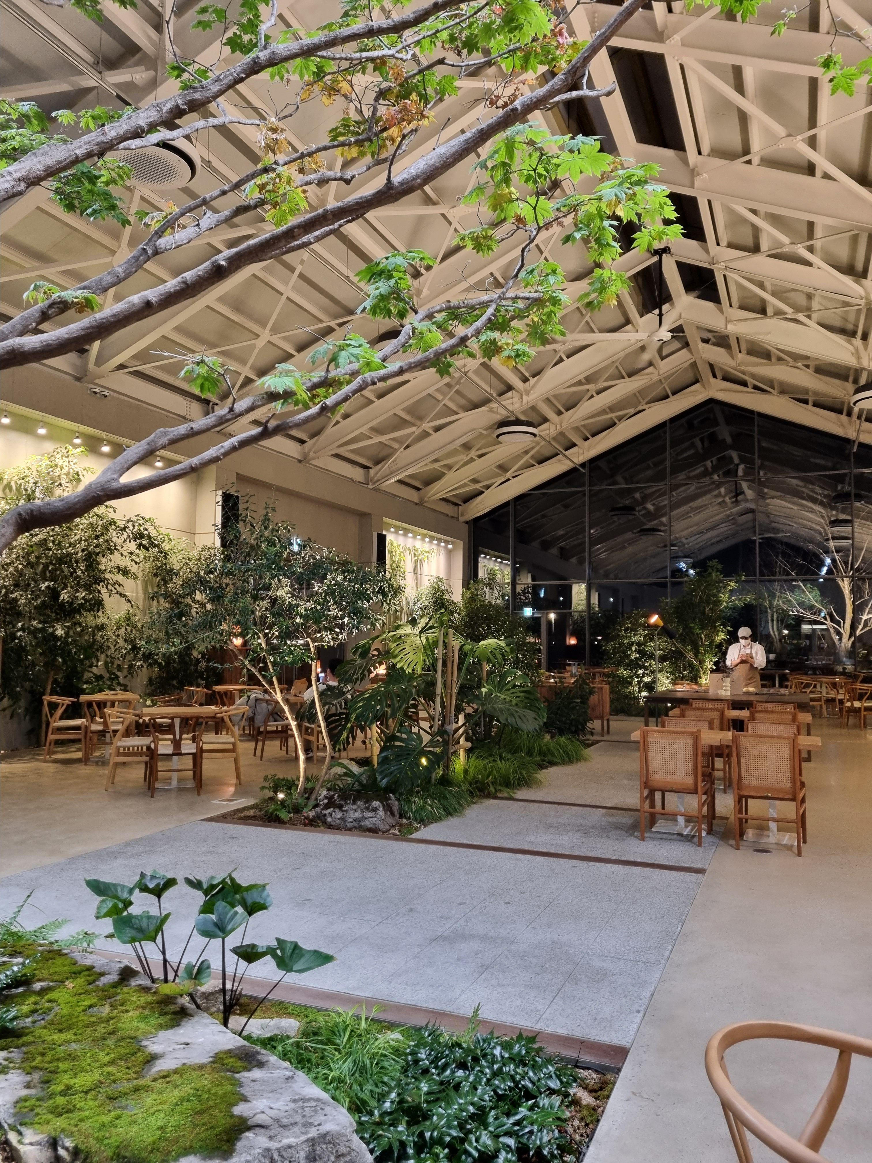 사실 요즘 플렌테리어 카페가 많아서 조화랑 진짜랑 섞었겠지.. 했는데 나무사이에 물주는 호수가 있는 걸 보고 다시 봤더니 모두 진짜 나무와 풀들이었습니다.